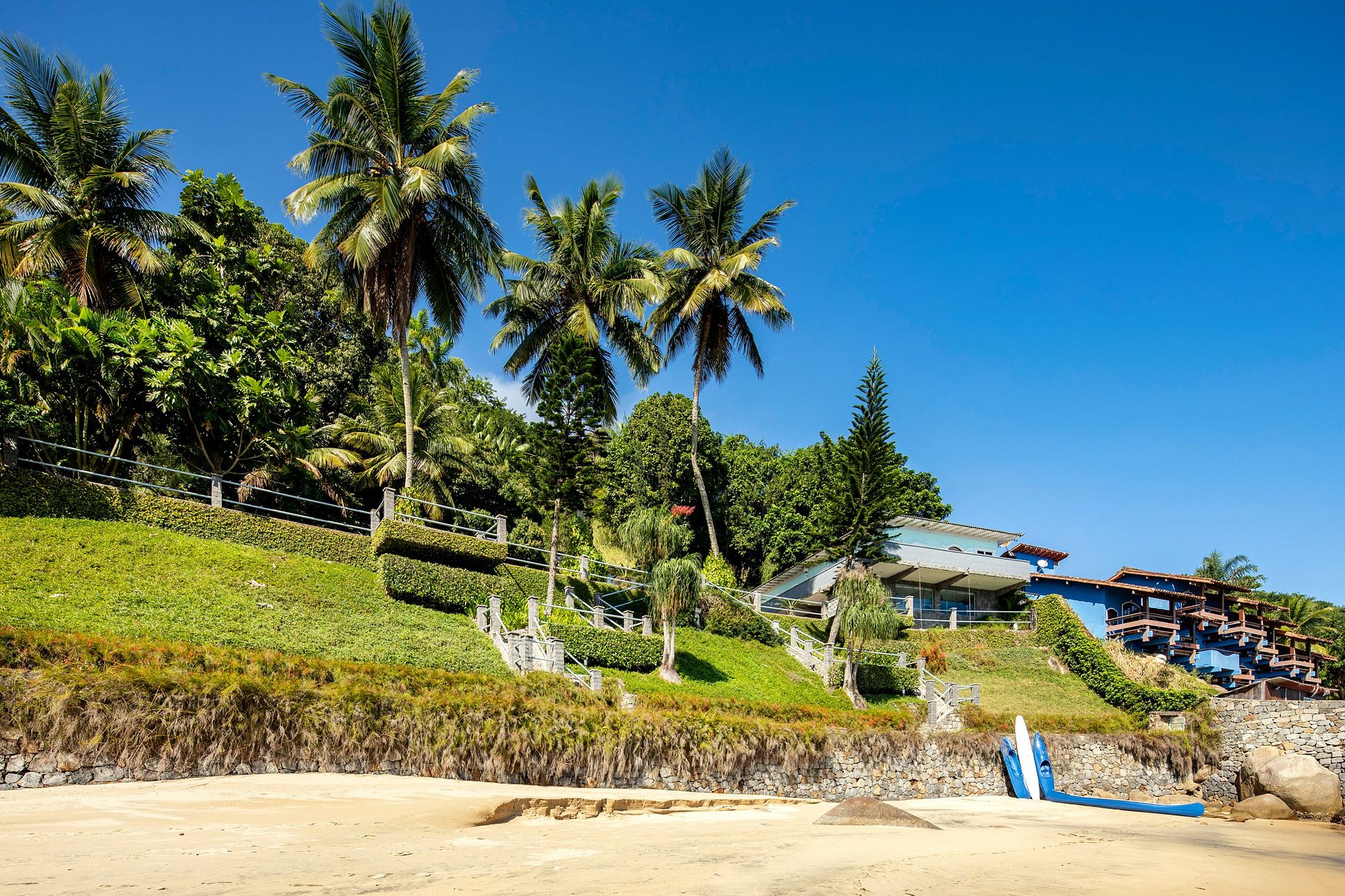 Cette magnifique propriété de style italienne dispose d'une belle plage privée de 115 mètres, entourée de jardins, de cocotiers et de la forêt atlantique, sur une superficie de 12 000 mètres.