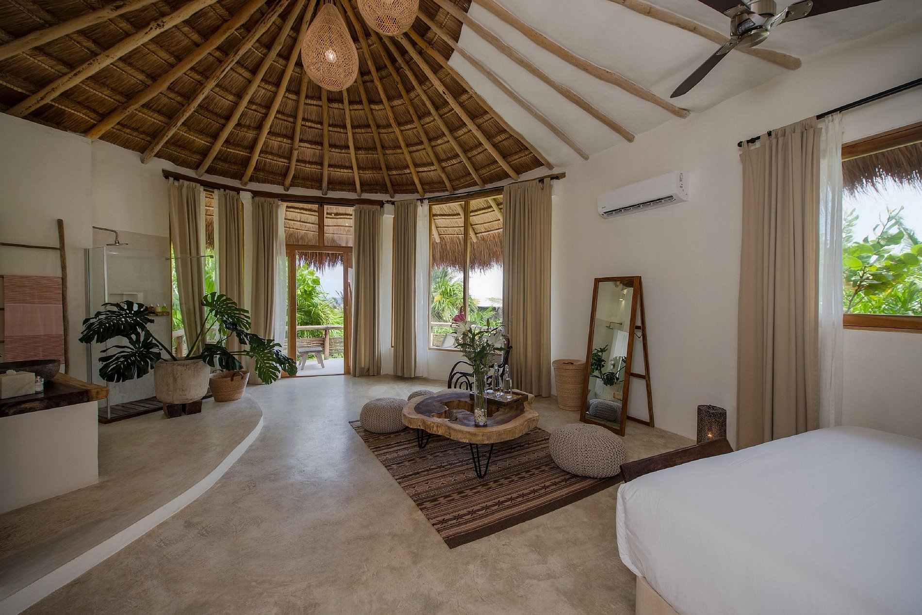Belle propriété située dans un espace privé au milieu de la flore tropicale qu'offre Tulum. C'est l'une des maisons contemporaines que cette destination exclusive offre où vous pourrez profiter de son design élégant et de son design intérieur détaillé. C'est une propriété avec trois petites maisons, qui peuvent également être louées séparément.