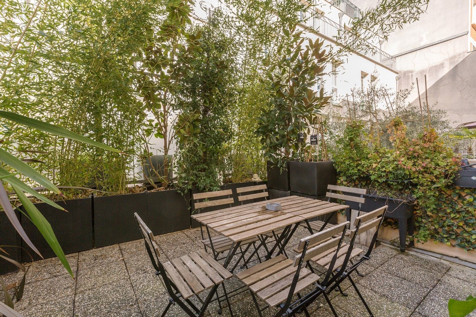 Entièrement climatisé, l'appartement dispose d'un salon décoré avec goût, agrémenté de touches élégantes. Vous y trouverez un coin salon confortable parfait pour se détendre après une journée d'exploration de la ville, ainsi qu'une table à manger pour quatre personnes où vous pourrez partager des repas avec vos proches. L'un des points forts de cet appartement est sa luxuriante terrasse de 20 mètres carrés, entourée de plantes de bambou, créant un oasis extérieur serein. La terrasse est meublée d'une table d'extérieur pour six personnes, offrant le cadre idéal pour des repas en plein air ou simplement se détendre à l'air libre. L'appartement est également doté d'une cuisine entièrement équipée, avec de l'eau purifiée pour votre confort. Que vous prépariez un petit-déjeuner rapide ou que vous vous régaliez d'un repas gourmet, vous trouverez tout ce dont vous avez besoin pour créer des délices culinaires. La chambre principale bien aménagée offre un havre de paix, avec amplement d'espace de rangement et un lit confortable garantissant une nuit de sommeil réparatrice. Avec son mélange de confort moderne et de décoration élégante, cet appartement est le choix idéal pour votre escapade parisienne dans le vibrant quartier de Roquette.