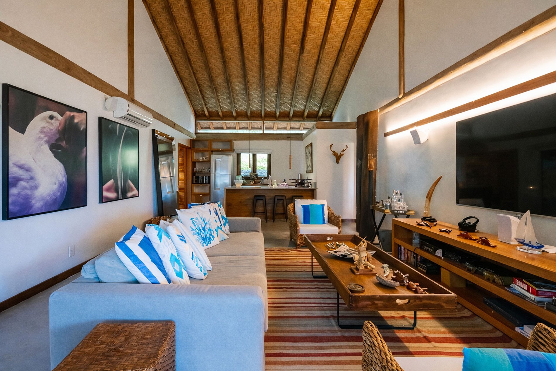 Entre les collines verdoyantes d'Ilha Grande et derrière les 400 mètres de plage de sable blanc se trouve la propriété spacieuse et charmante de Praia do Iguassu.