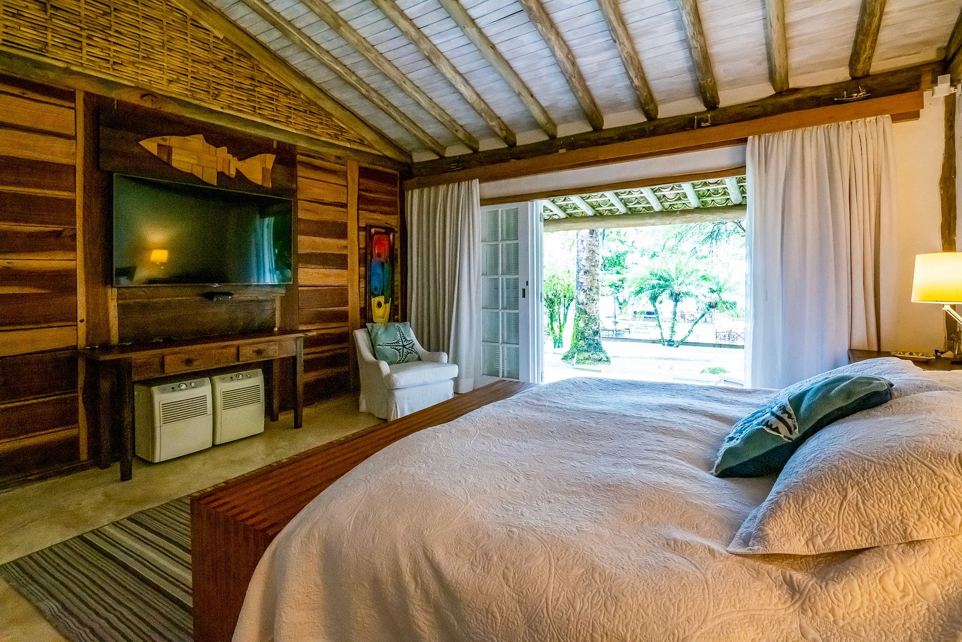 Entre les collines verdoyantes d'Ilha Grande et derrière les 400 mètres de plage de sable blanc se trouve la propriété spacieuse et charmante de Praia do Iguassu.