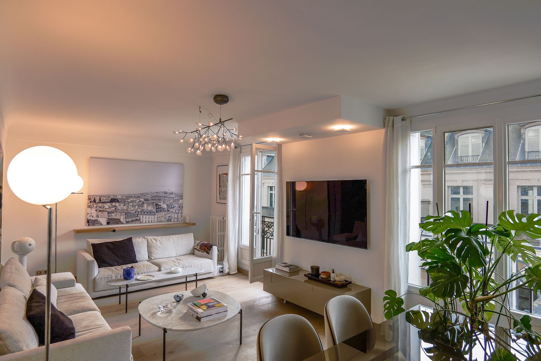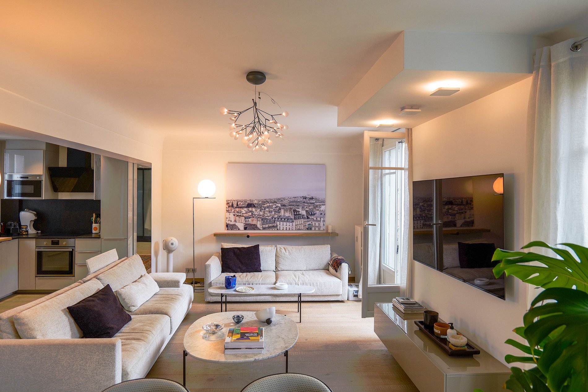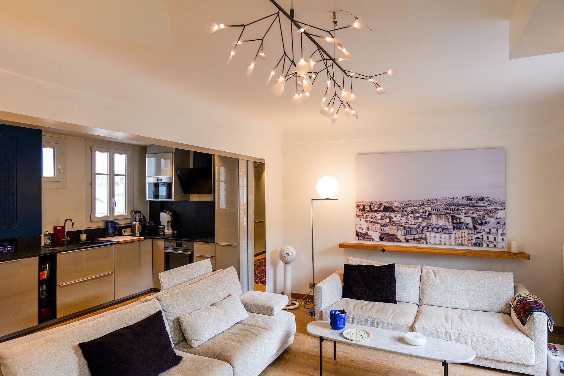 L'appartement bénéficie d'une ambiance sereine, avec une abondance de lumière naturelle qui traverse les fenêtres, créant une atmosphère accueillante dans tout l'espace.
