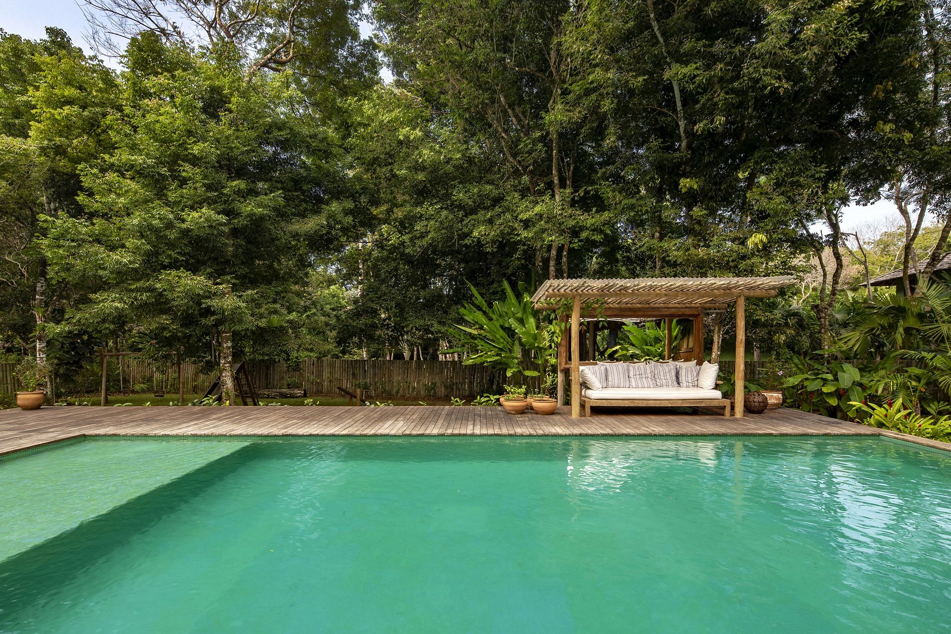 Dans le jardin tropical, deux autres chambres indépendantes de 60m2 possèdent leur propre balcon avec hamac.Un véritable paradis, surveillé 24/24, á moins de 10 minutes du Quadrado ou de la plage.La femme de chambre disponible quotidiennement préparera également votre petit-déjeuner.