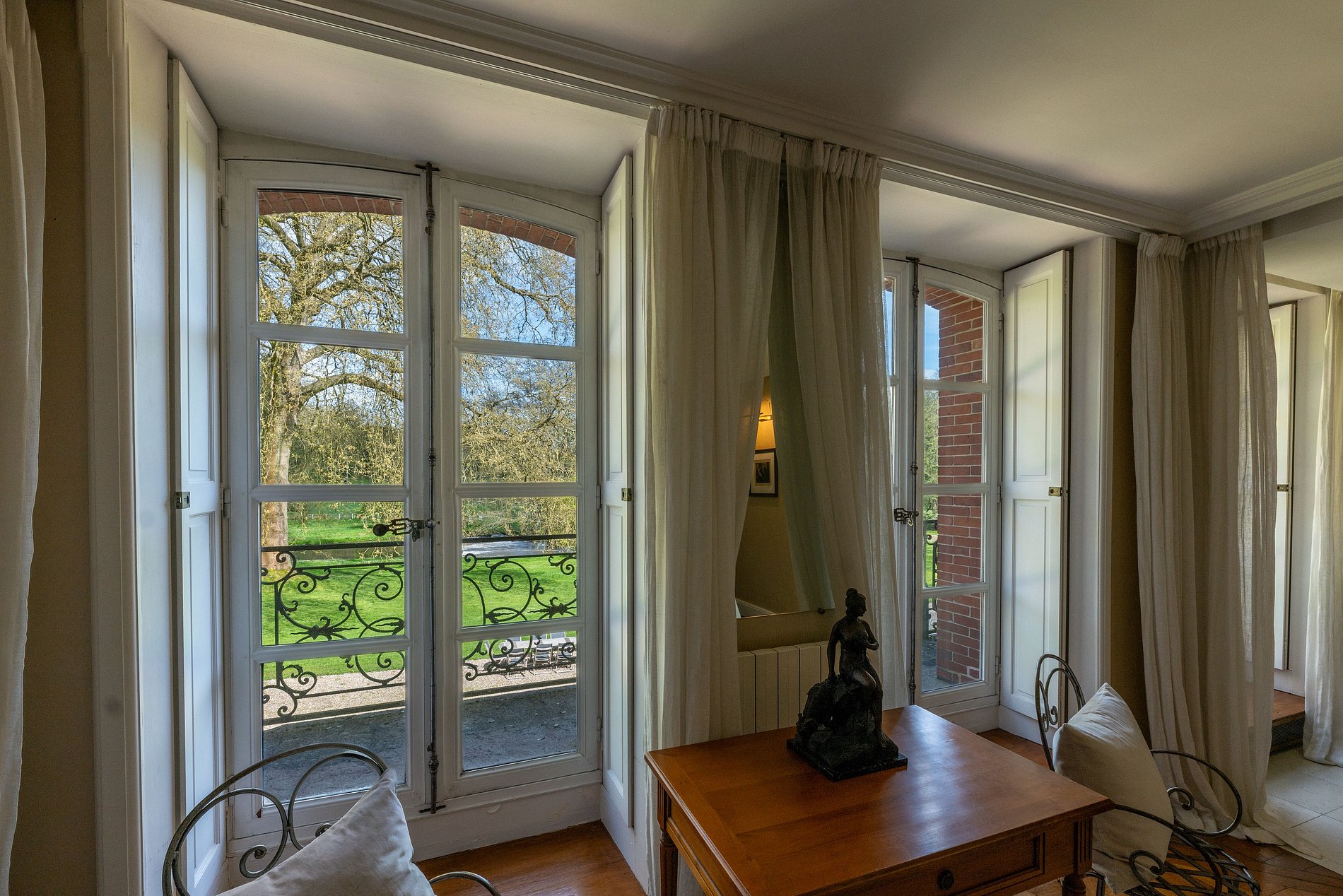 À l'extérieur, la propriété se déploie dans un havre de tranquillité, où de majestueux platanes jettent des ombres tachetées sur des jardins entretenus. Le doux murmure de la rivière sert de bande-son apaisante, accompagné par le chœur des chants d'oiseaux. Il n'est pas étonnant que cette retraite idyllique soit une destination prisée des politiciens et des PDG estimés en quête de répit du tumulte de la vie urbaine. Ici, au milieu de la sereine beauté de la Normandie, on peut vraiment se détendre et se ressourcer, enveloppé dans le charme intemporel de cet domaine historique.