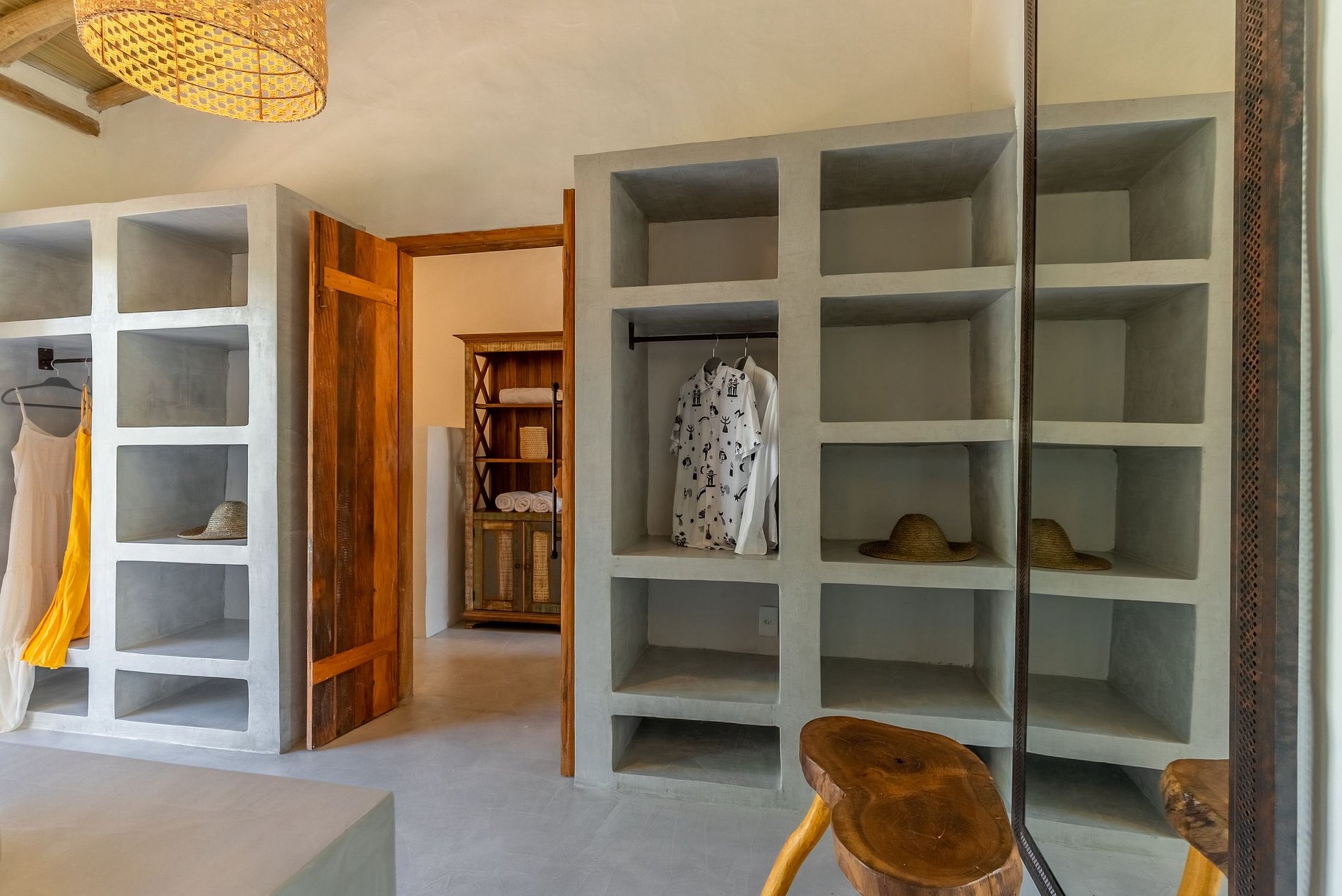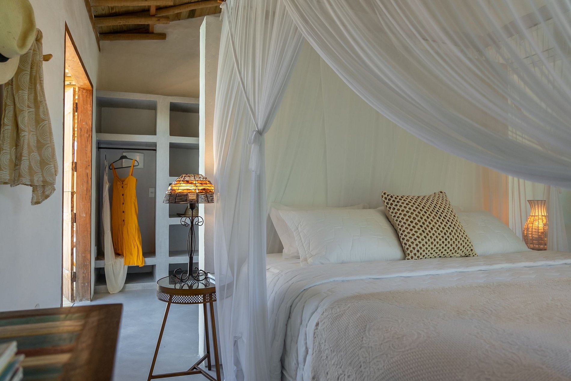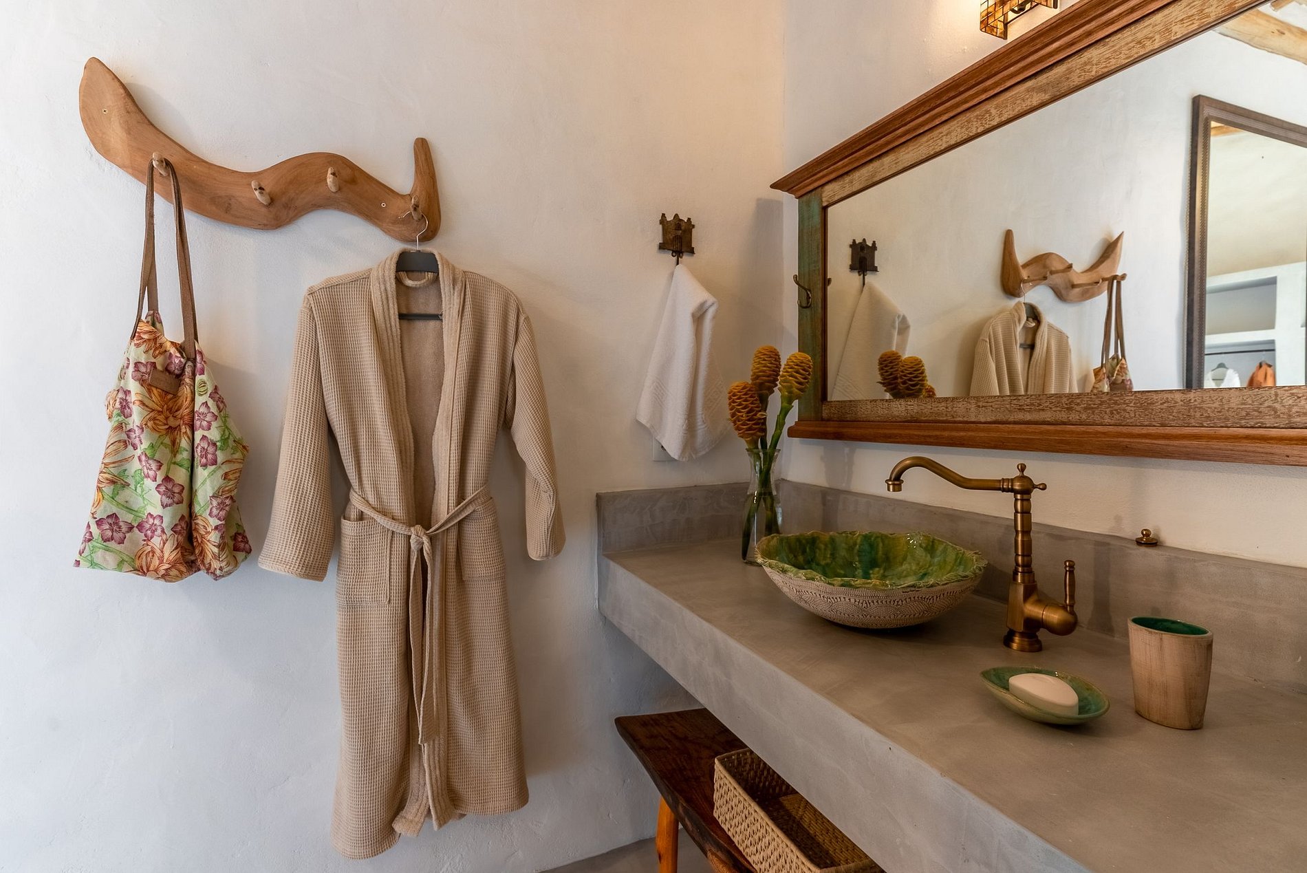 De style rustique mais sophistiqué, il se distingue par le plâtre Santa Fé et par la décoration valorisant l'artisanat brésilien, avec des pièces d'artisans de différents états du Brésil. La villa dispose de 5 chambres dont 4 suites et 1 salle de bain qui dessert la chambre en mezzanine (toutes climatisées), salle TV, salon et salle à manger, un hamac douillet dans un grand jardin, espace gourmand avec barbecue et table à manger. extérieure, piscine à débordement et une vue imprenable sur la forêt indigène et une douche extérieure.