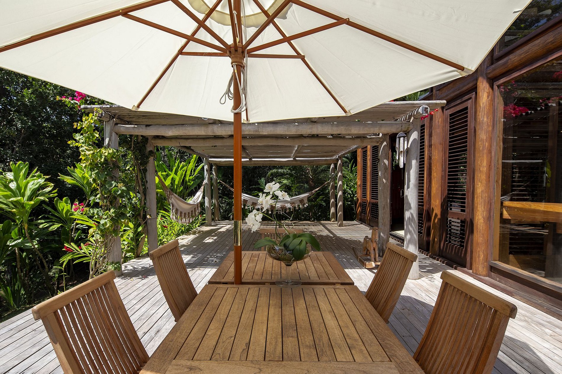 La grande piscine, la splendide terrasse avec ses meubles décontractés et les hamacs sous une terrasse tropicale sont des lieux de pure détente et de bien-être.