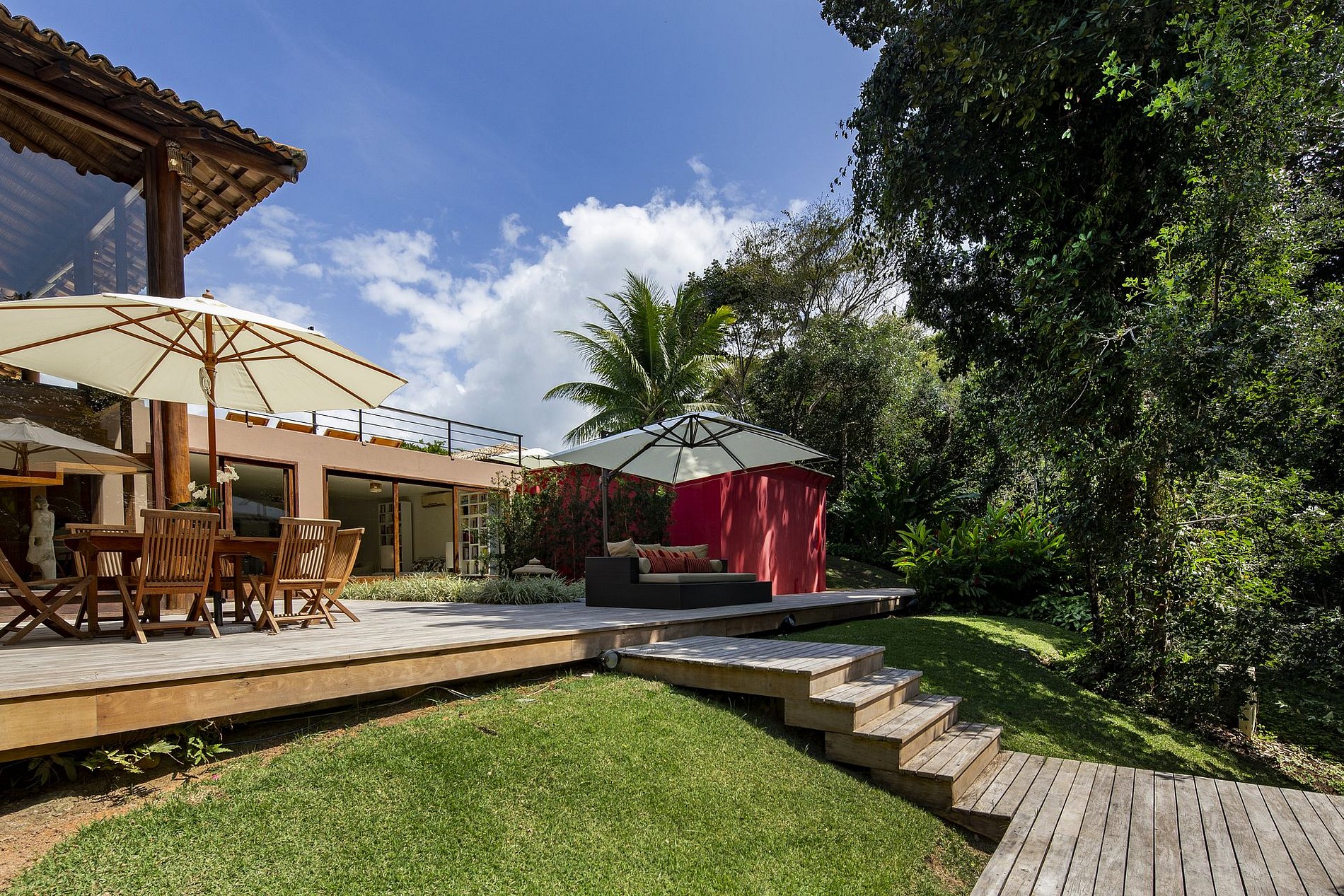 La luxueuse résidence de vacances est située à la périphérie de Trancoso, une petite ville coloniale sur la côte Bahianaise qui diffuse son charme de la vie et contribuera à une expérience de vacances inoubliable.