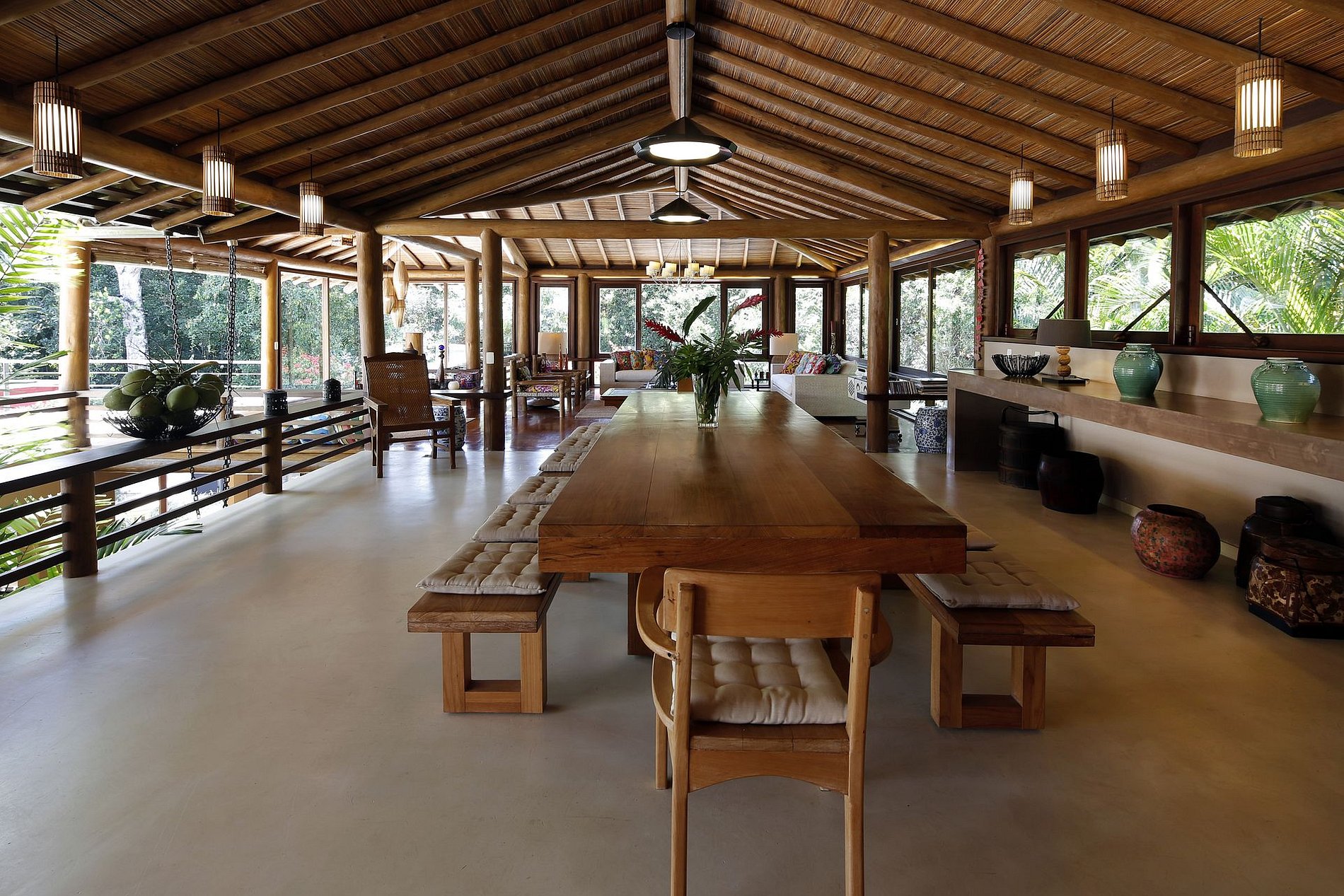 Le design intérieur du manoir de 900 mètres carrés est un mélange unique de confort Bahianais décontracté et de luxe moderne.