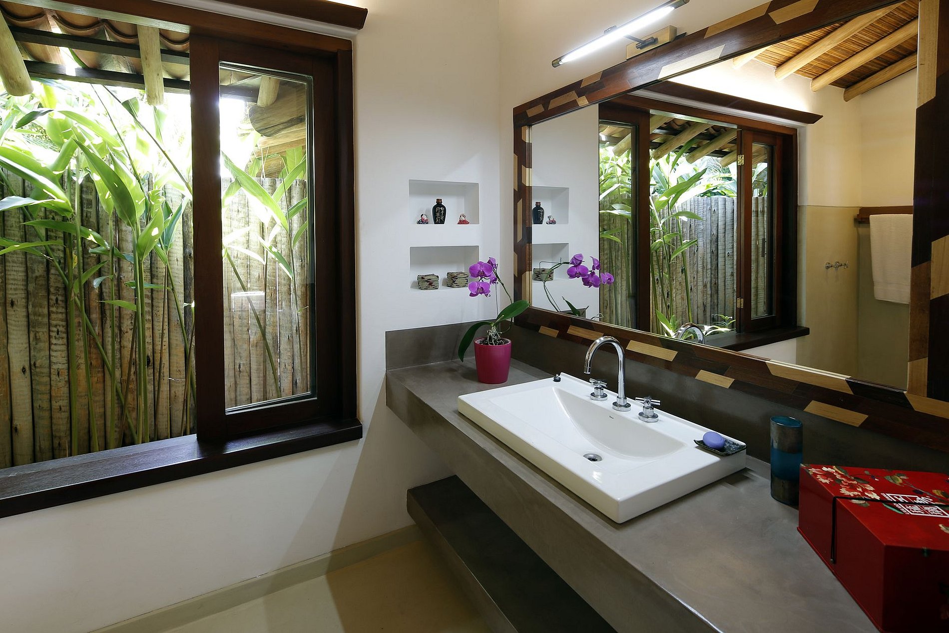 Toutes les 6 suites de la propriété viennent avec salle de bains et ACs. Dans la suite parentale, vous trouverez un jacuzzi. Chaque suite offre une vue magnifique différente pour ses invités privilégiés, par exemple au jardin, à la piscine et aux paysages de Mata Atlântica.