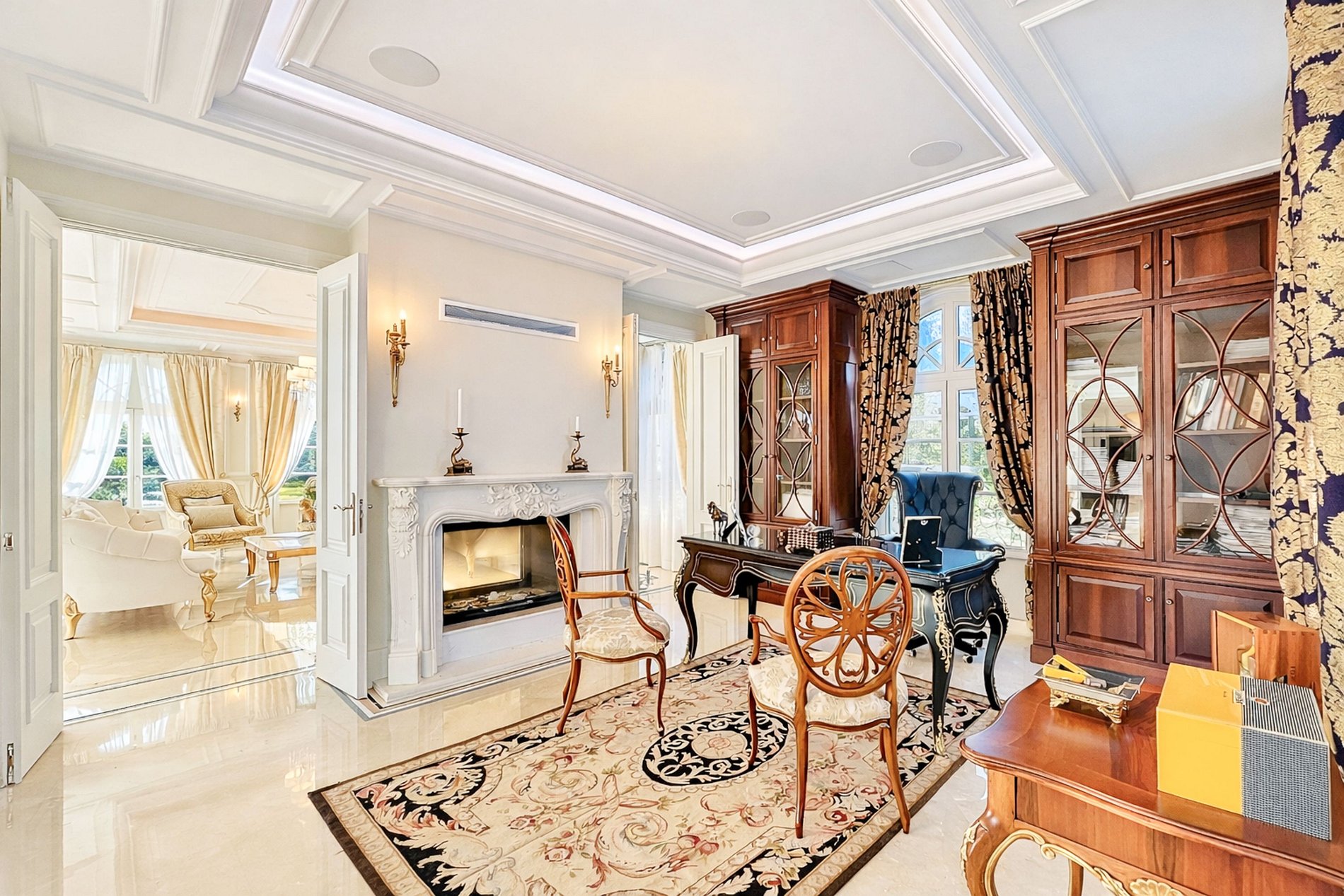 • Un bureau avec cheminée