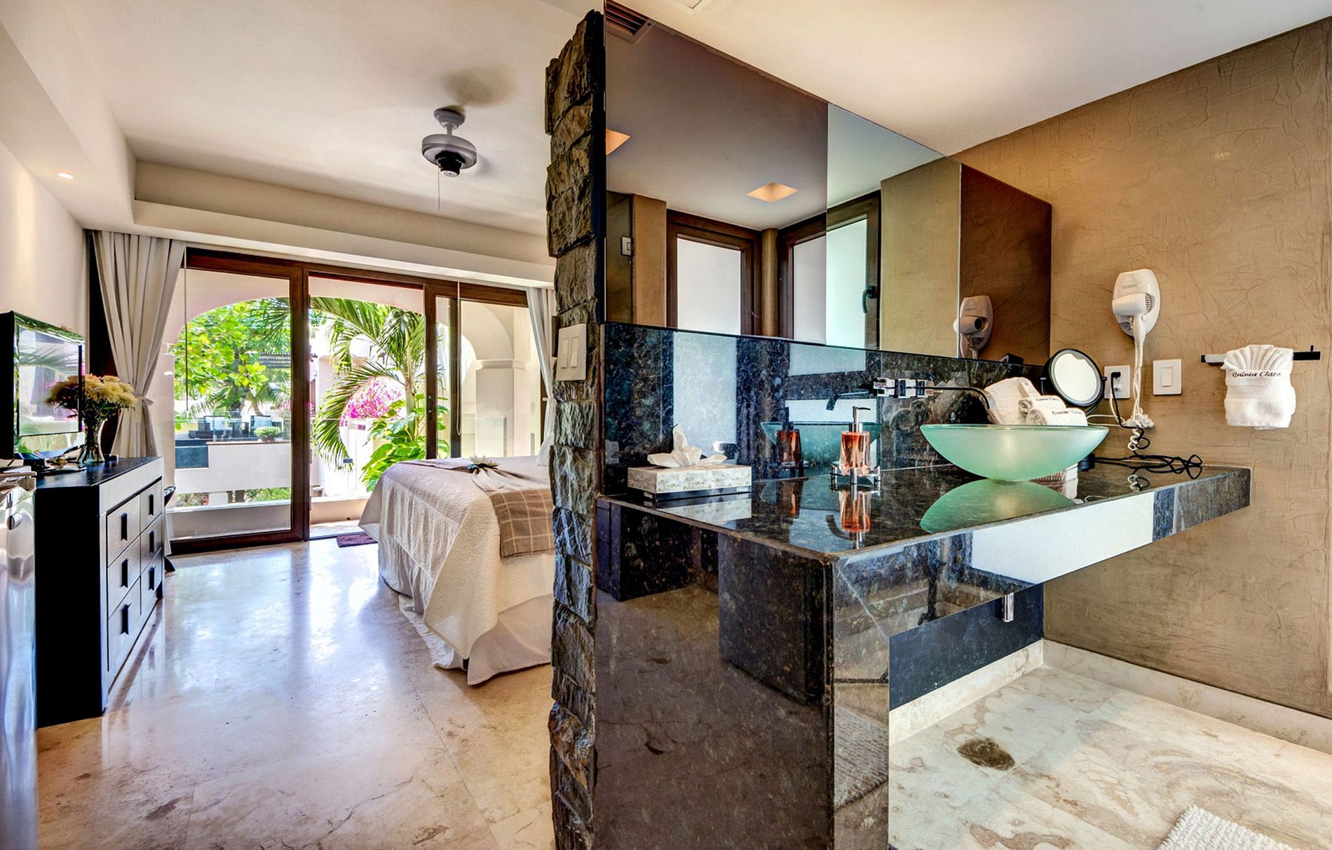 Lit King size, Climatisation, Ventilateur au plafond, Salle de bain attenante avec douche, TV écran plat, Vue sur le jardin, Entrée privée, Coffre-fort, TV satellite, Téléphone, Articles de toilette, Accès Wifi, Moustiquaire