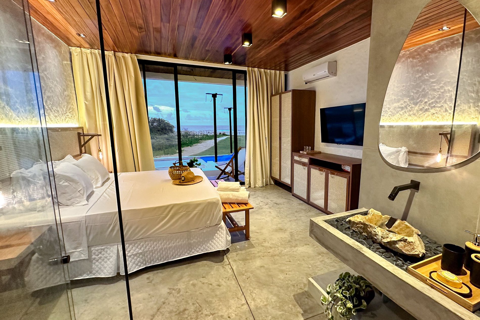 Profitez de moments privilégiés sur la terrasse avec vue sur la mer, ou réchauffez-vous près du foyer extérieur. Profitez de la télévision à écran plat dans le salon, et pour des moments de détente, profitez d'une baignoire hydromassante.