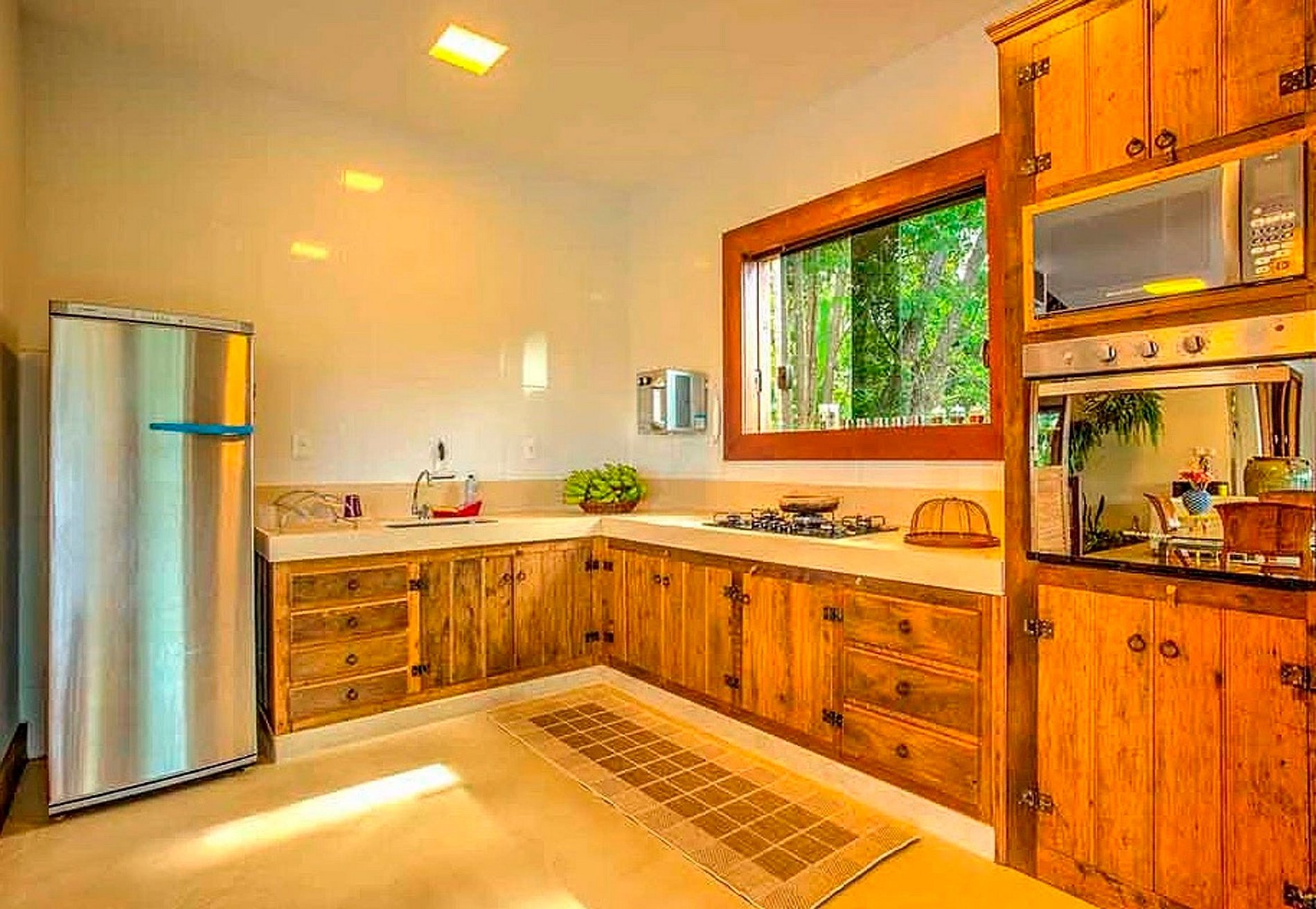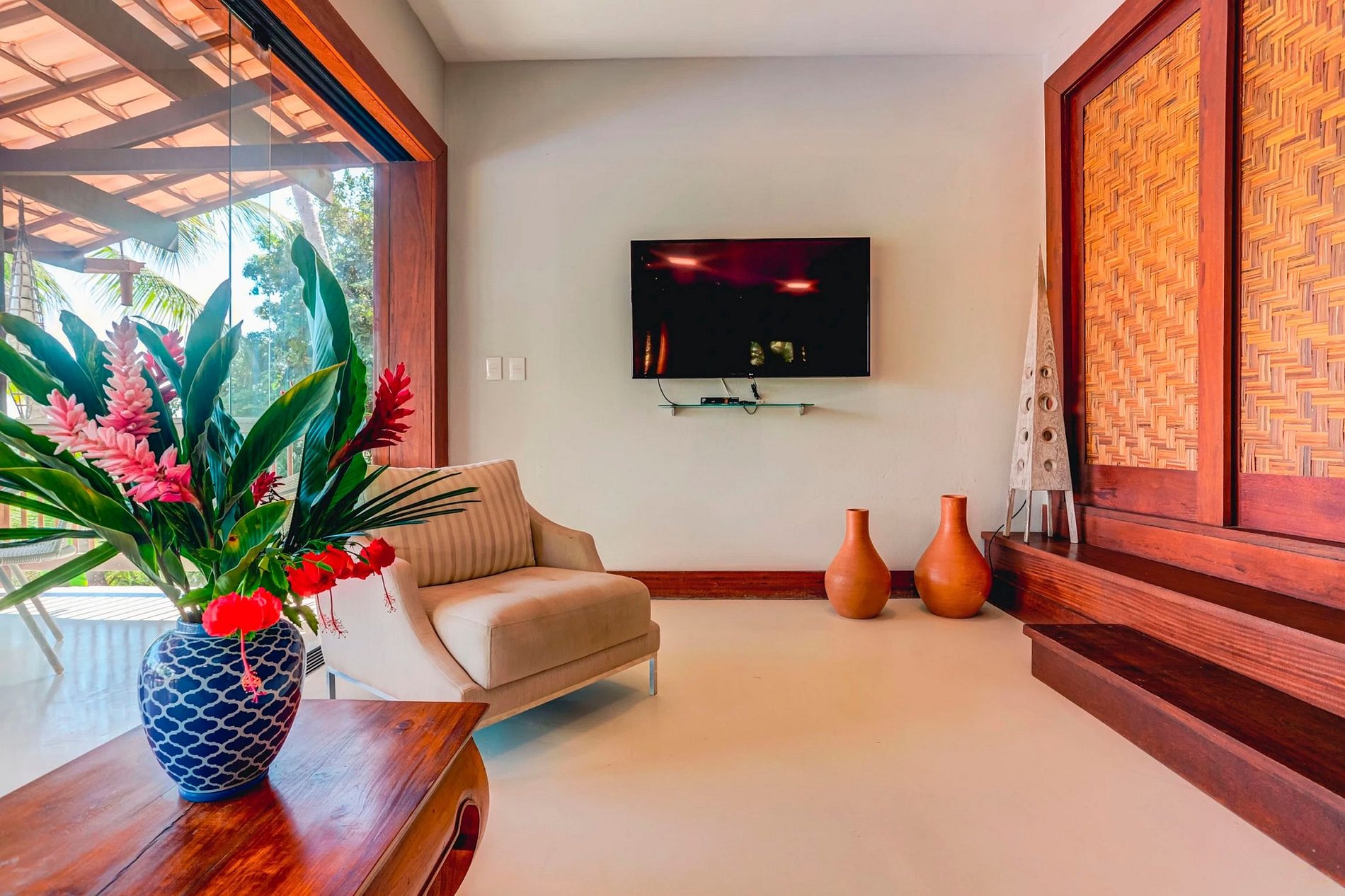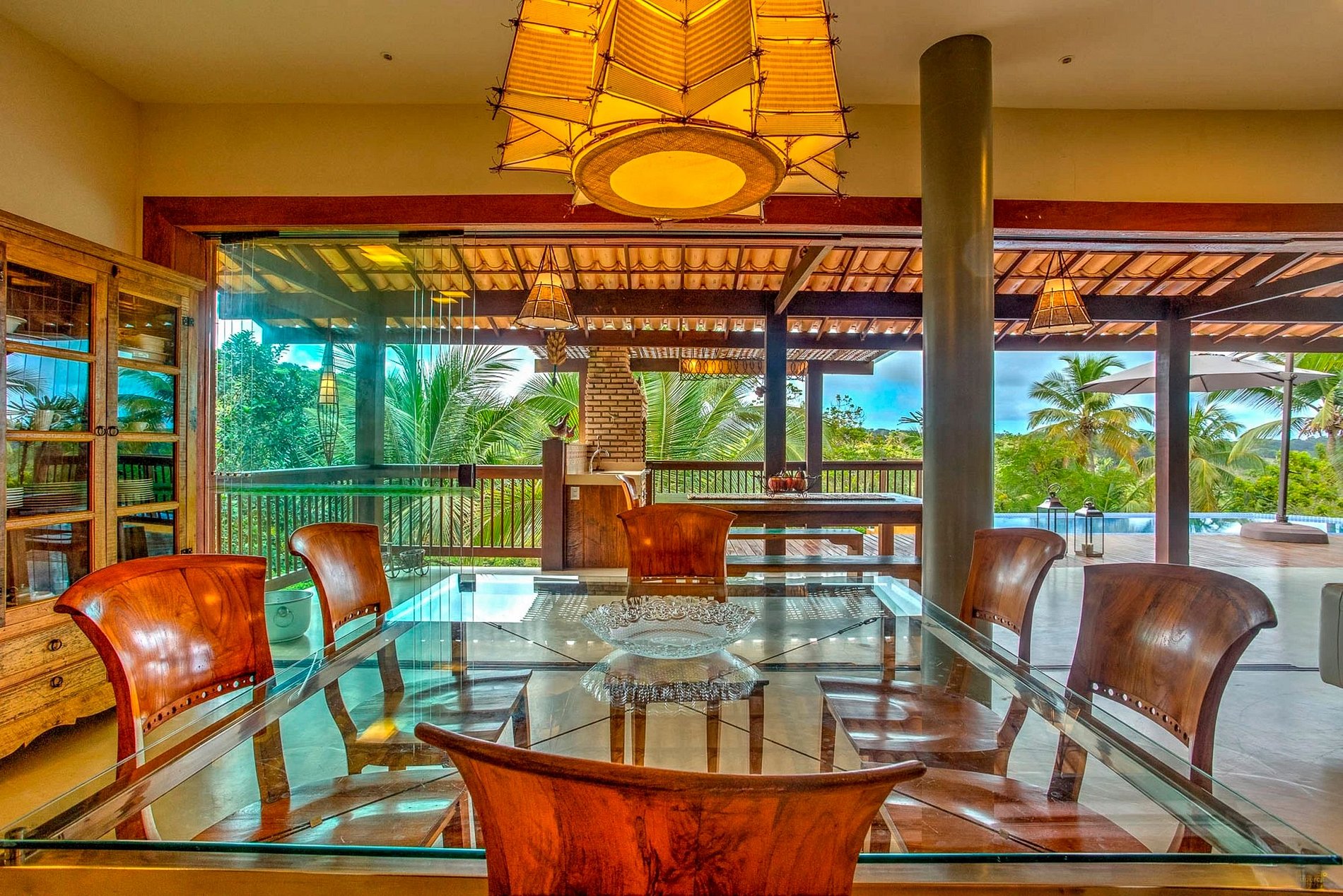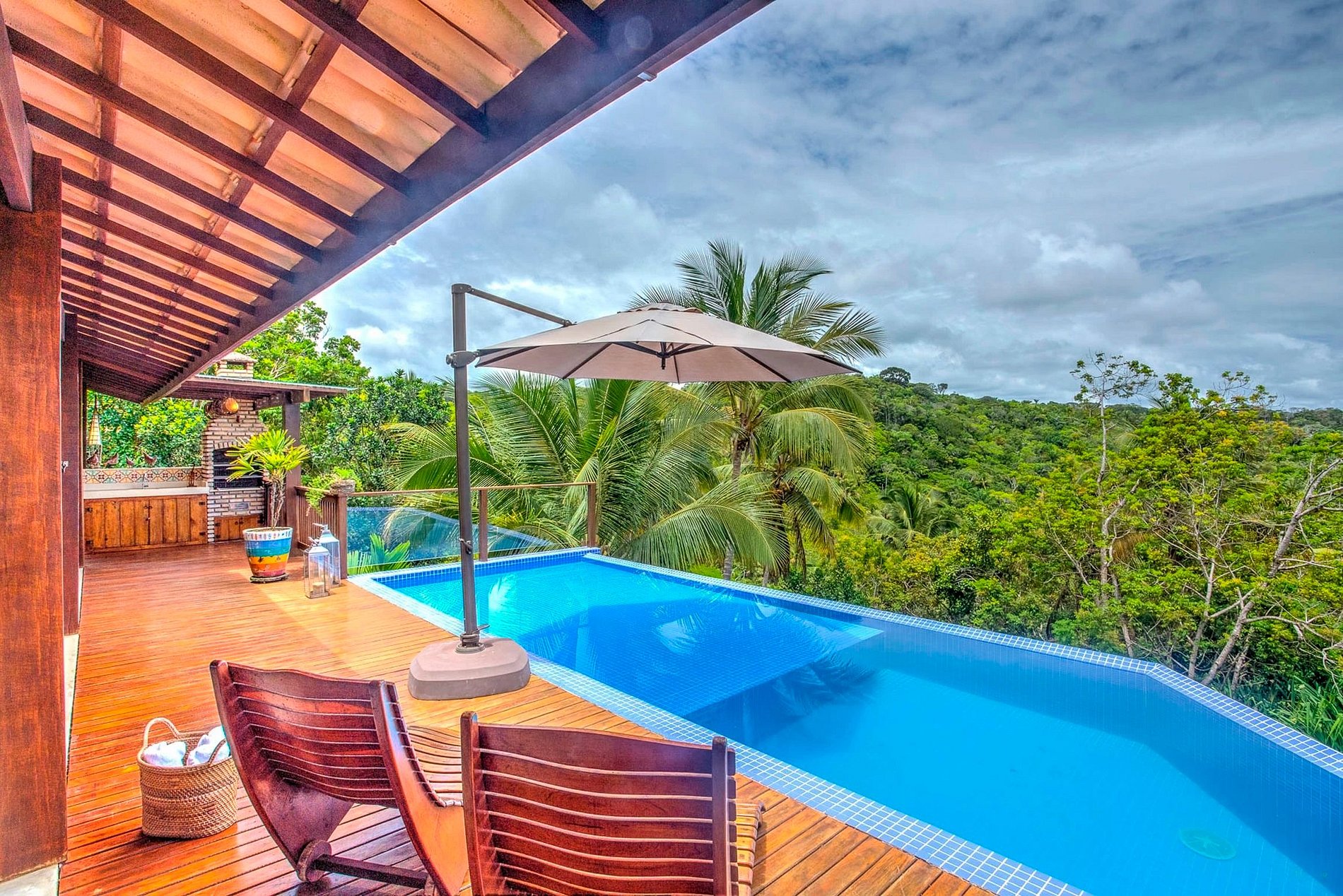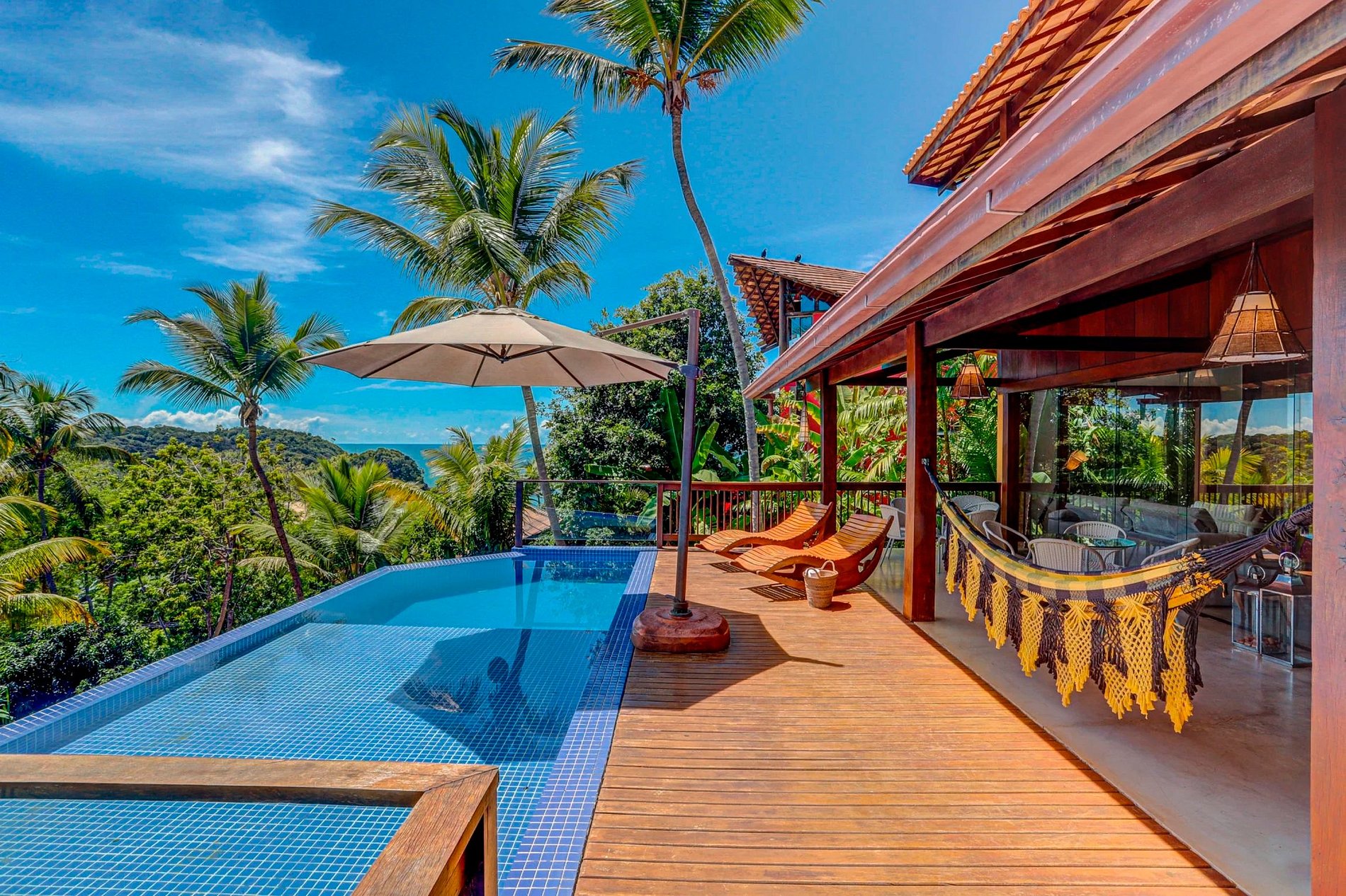 Au rez-de-chaussée, de manière intégrée, le salon, salle TV, cuisine, table à manger, balcon, barbecue, piscine. Au rez-de-chaussée il y a une autre suite. Au total 04 suites, pouvant accueillir 10 personnes.