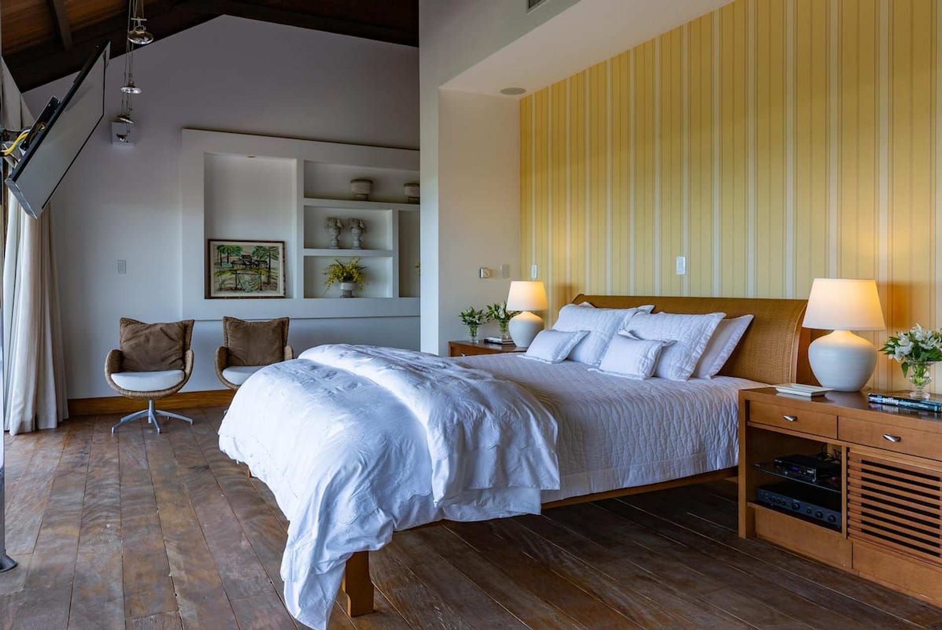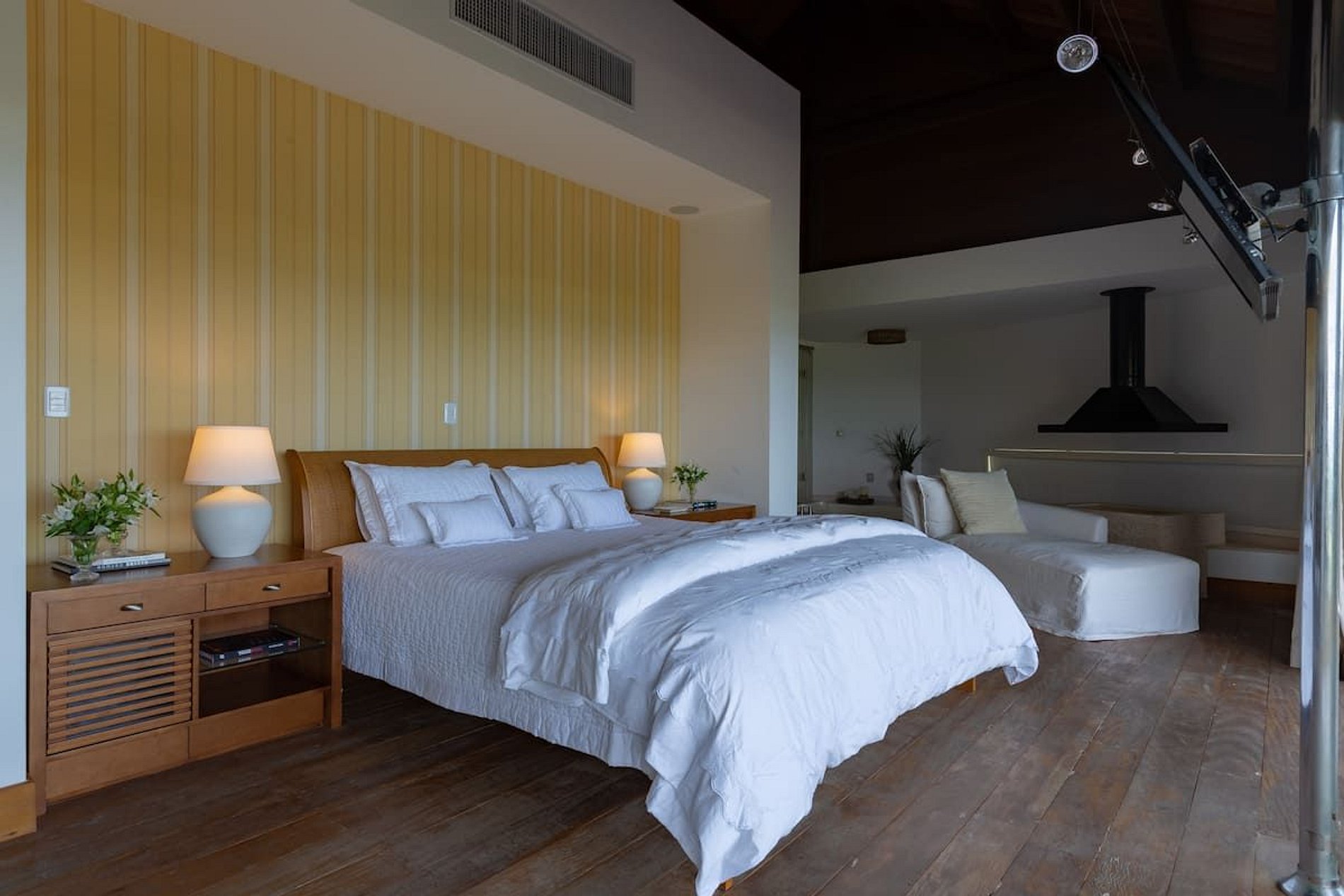 Grandes familles, groupe d'amis, tout le monde aura son espace. La villa dispose de 3 suites dans l’Ocean House + 2 suites et de 2 demi-suites dans la Garden House, pouvant accueillir confortablement 14 personnes, toutes climatisées, ainsi que de deux lits supplémentaires. Le point culminant de la suite principale comprend un lit King Size face au lever du soleil, une chaise, une cheminée, un jacuzzi, une double douche, un grand comptoir lavabo et un magnifique dressing avec dressing.