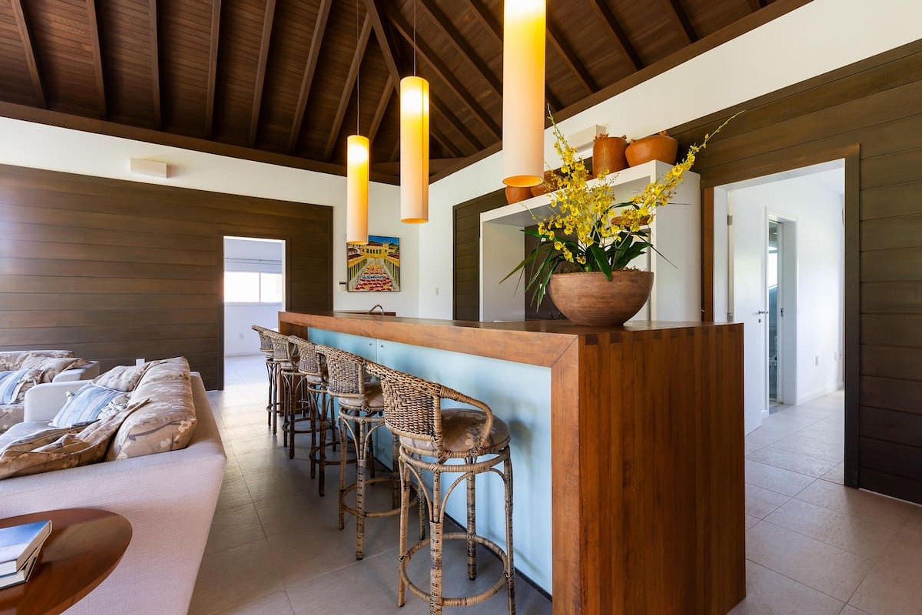 The Ocean House est composé d'un environnement confortable avec salle de télévision, salon et salle à manger, cheminée, espace enfants, bureau et 06 toilettes. Surprenez-vous avec la vue depuis le belvédère. La résidence dispose d'armoires intégrées, d'une cuisine complète, d'une pizzeria et d'une sonorisation différenciée.