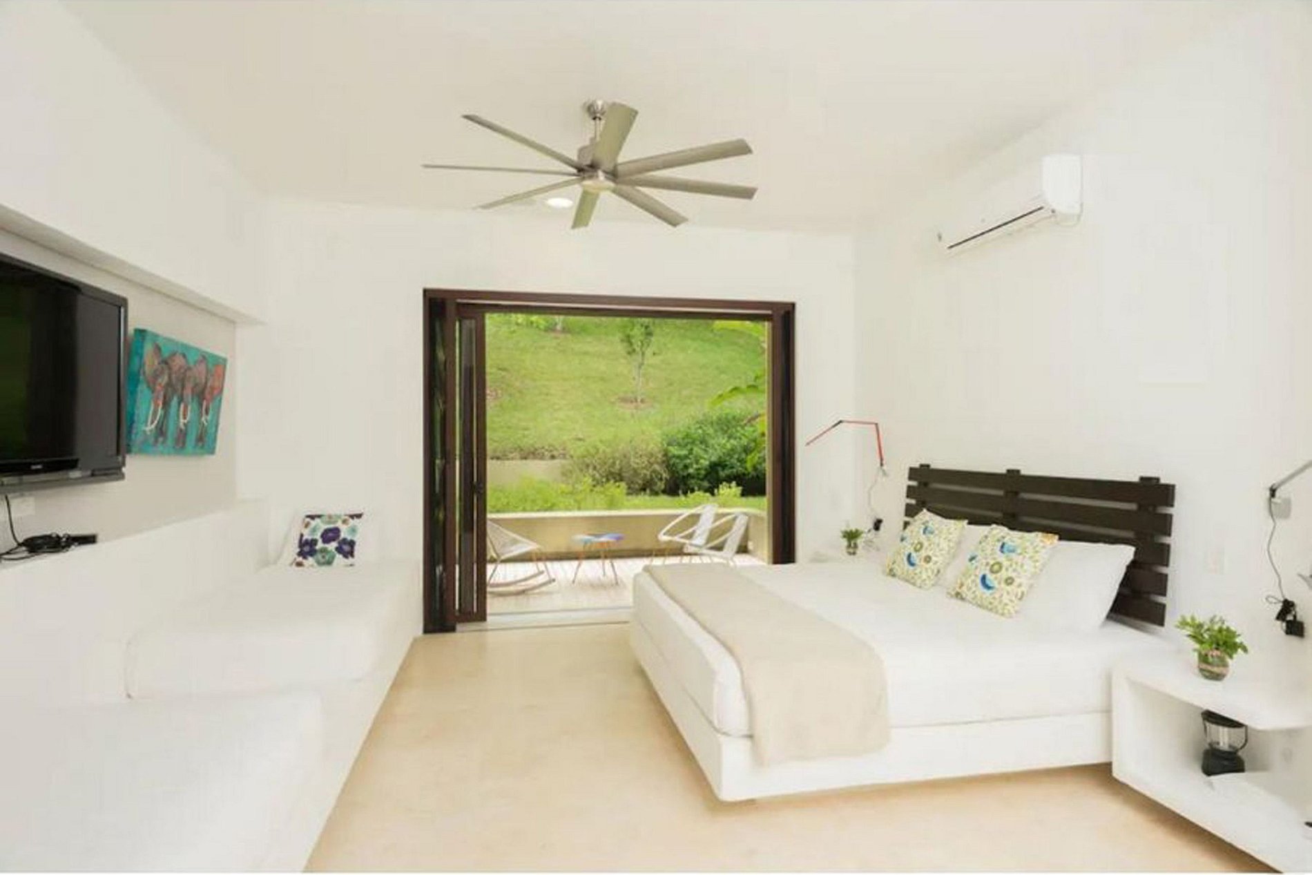 À l’intérieur, la villa dispose d’une salle de télévision ainsi que d’un espace adapté aux enfants avec petite table. La suite principale bénéficie d’une terrasse privée et d’une salle de bains avec baignoire. Toutes les chambres sont équipées de climatisation, ventilateur et télévision. L’orientation solaire le matin garantit des espaces lumineux et agréables tout au long de la journée. Capacité maximale : 16 personnes.