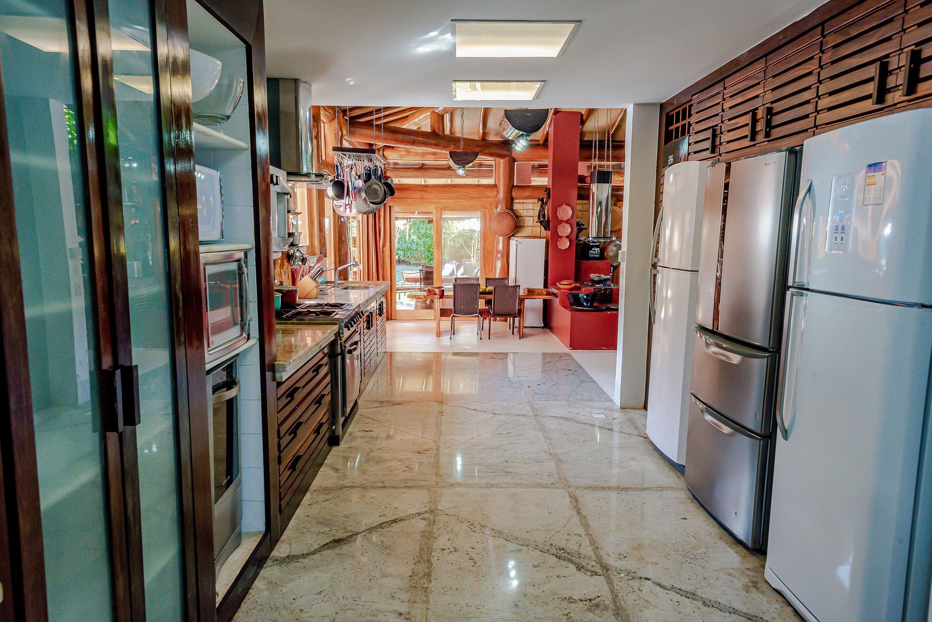 Il y a 6 grandes chambres avec salle de bain, pouvant accueillir jusqu'à 13 personnes.Chacune dispose d'un balcon, de la climatisation, d'une grande télévision et d'un minibar. La suite principale possède un grand jacuzzi. Les espaces de vie sont composés d'un grand salon, d´une salle à manger équipée, de 2 cuisines ouvertes équipées et d´un espace gourmet avec poêle à bois, four á bois et barbecue.
