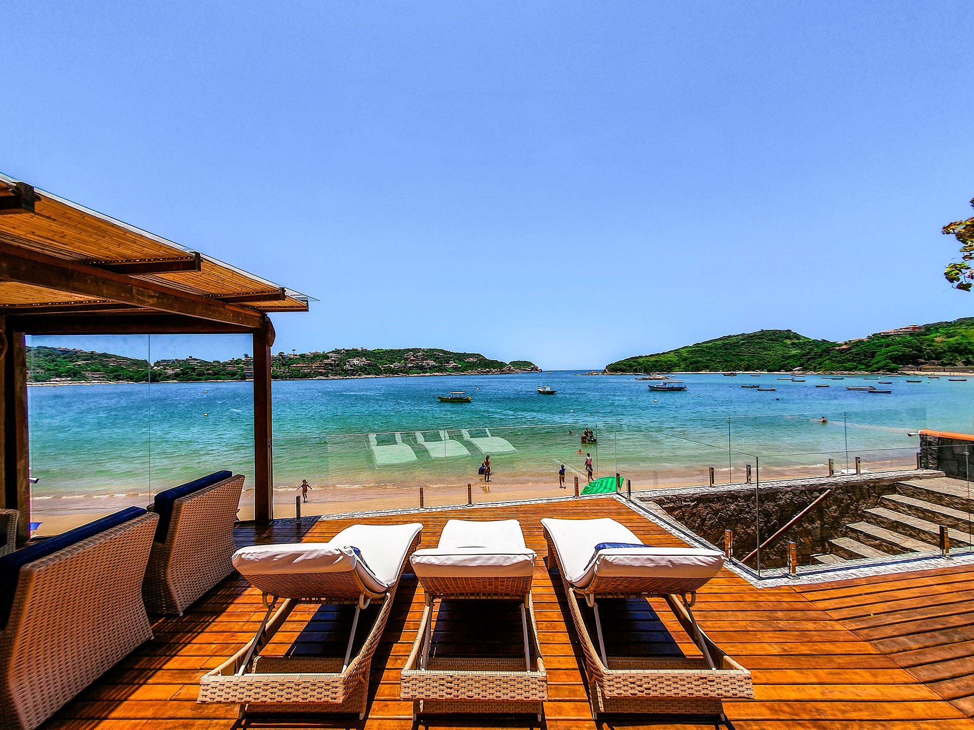 Grande villa de 2 étages avec grande piscine, 5 belles suites et face à la célèbre plage en fer à cheval, le meilleur emplacement de Búzios.