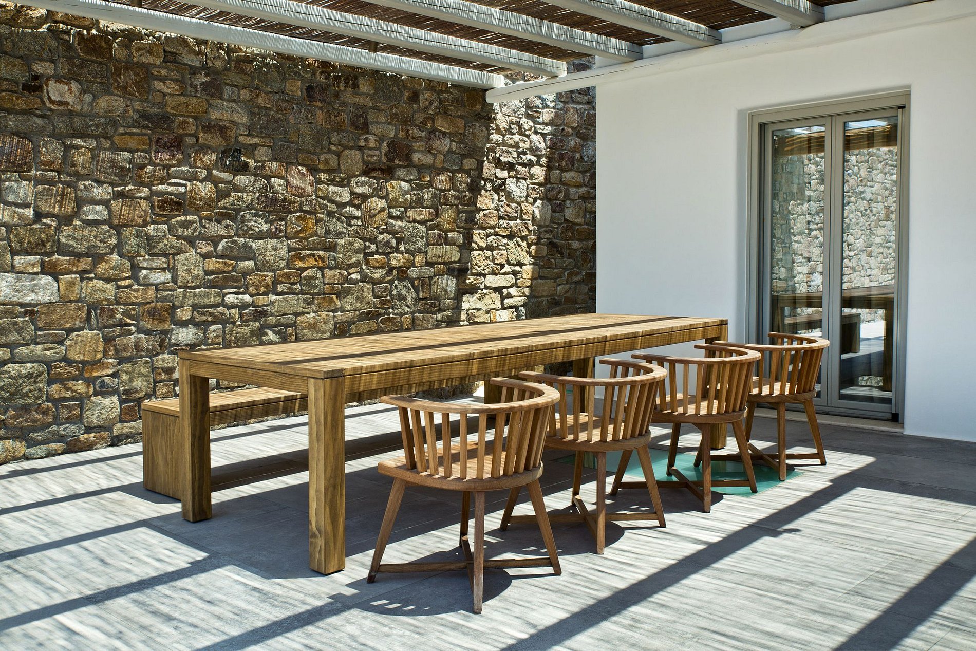 Cette villa située dans le quartier d'Agia Sofia mixe avec brio des équipements ultramodernes avec le style traditionnel des Cyclades. L'architecture est basée sur l'utilisation de matériaux naturels, comme la pierre et le bois, laissant pénétrer la lumière et offre aux clients une expérience inimitable dans cet open-space. À seulement quelques minutes de la pittoresque ville de Mykonos, ce quartier paisible est l'endroit idéal pour ceux qui recherchent des vacances reposantes dans un cadre magnifique, tout en étant à proximité des restaurants et des bars.