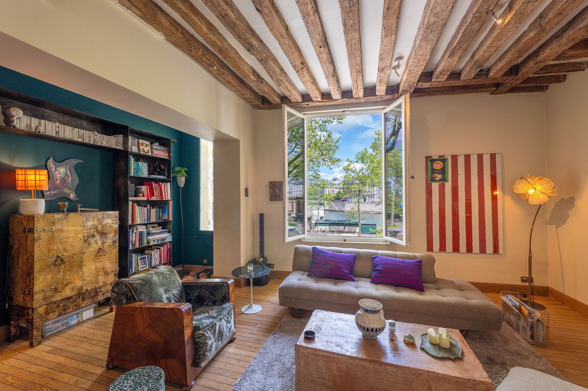 La cérémonie d’ouverture se déroule sur la portion de Seine qui passe devant les fenêtres de l’appartement. L'appartement entièrement climatisée s'étend sur trois niveaux, offrant une expérience de vie unique.