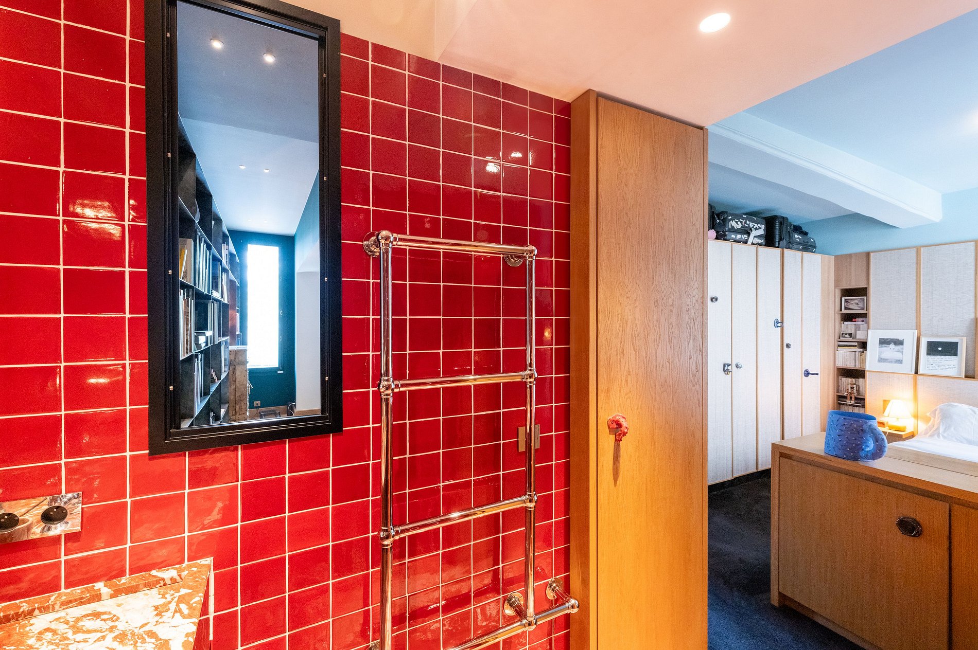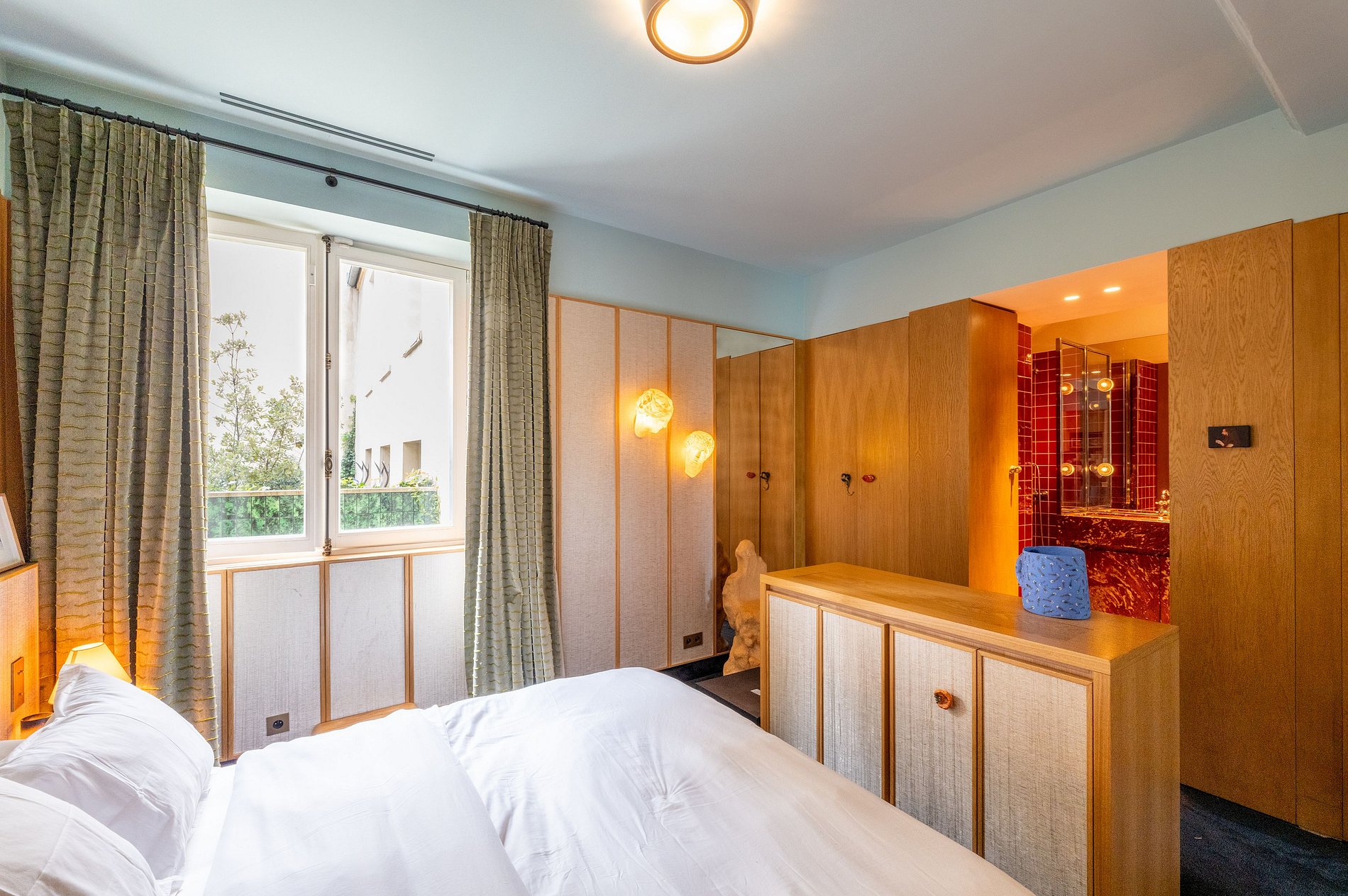 Adjacent au salon, une belle chambre en suite vous attend, offrant un refuge serein avec ses meubles élégants et son ambiance apaisante. Dès que vous entrez, cet appartement captive par son agencement unique et ses vues imprenables, promettant un séjour mémorable au cœur de Paris.