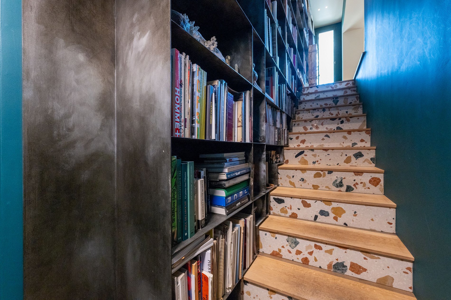 En montant à l'étage supérieur, vous découvrirez un salon chaleureux et accueillant, orné de vues sur la Seine et, à l'est, la majestueuse cathédrale Notre-Dame. Cet espace confortable invite à la détente et à la contemplation, offrant le cadre idéal pour se détendre après une journée d'exploration dans la ville.