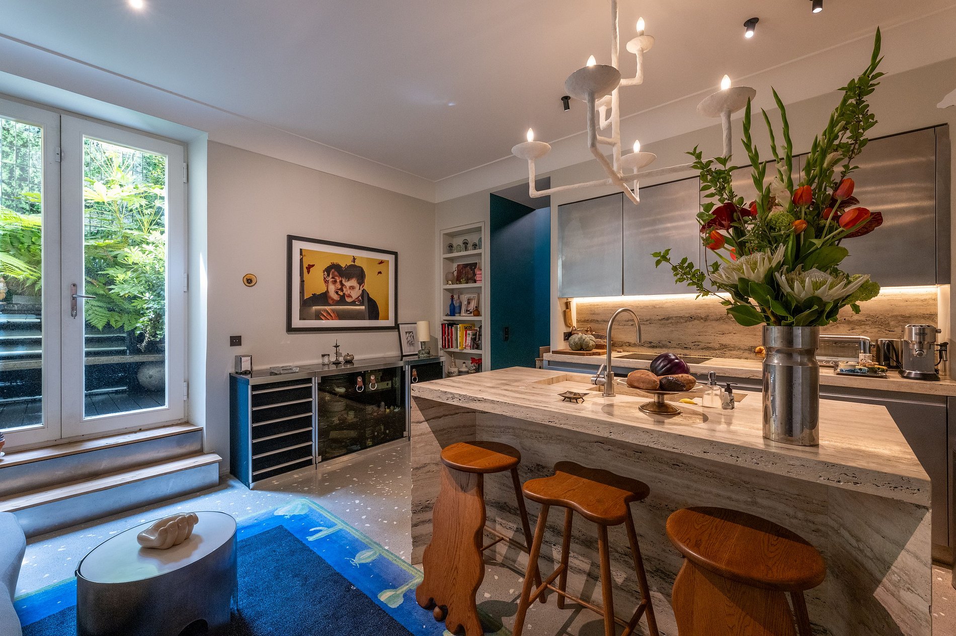 En entrant, vous êtes accueilli par une cuisine entièrement équipée qui s'ouvre sur un luxuriant patio, créant un oasis tranquille au cœur de la ville. Quelques marches plus bas, la salle à manger vous attend, dotée d'un espace surélevé ingénieusement conçu accessible par une échelle. Ici, un grand lit vous attend, idéal pour un adolescent ou un jeune couple, accompagné d'une petite salle de bains privative pour plus de commodité.