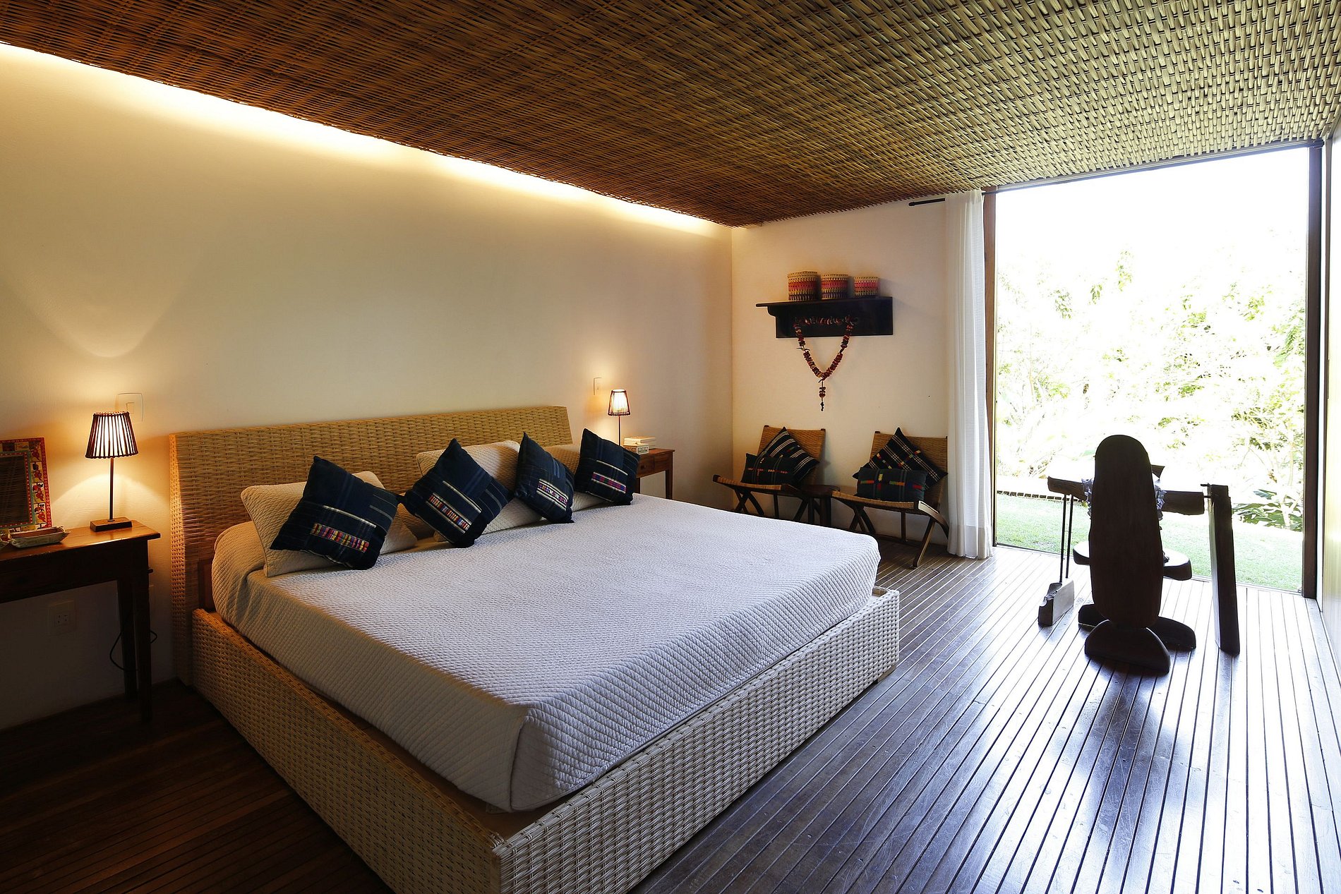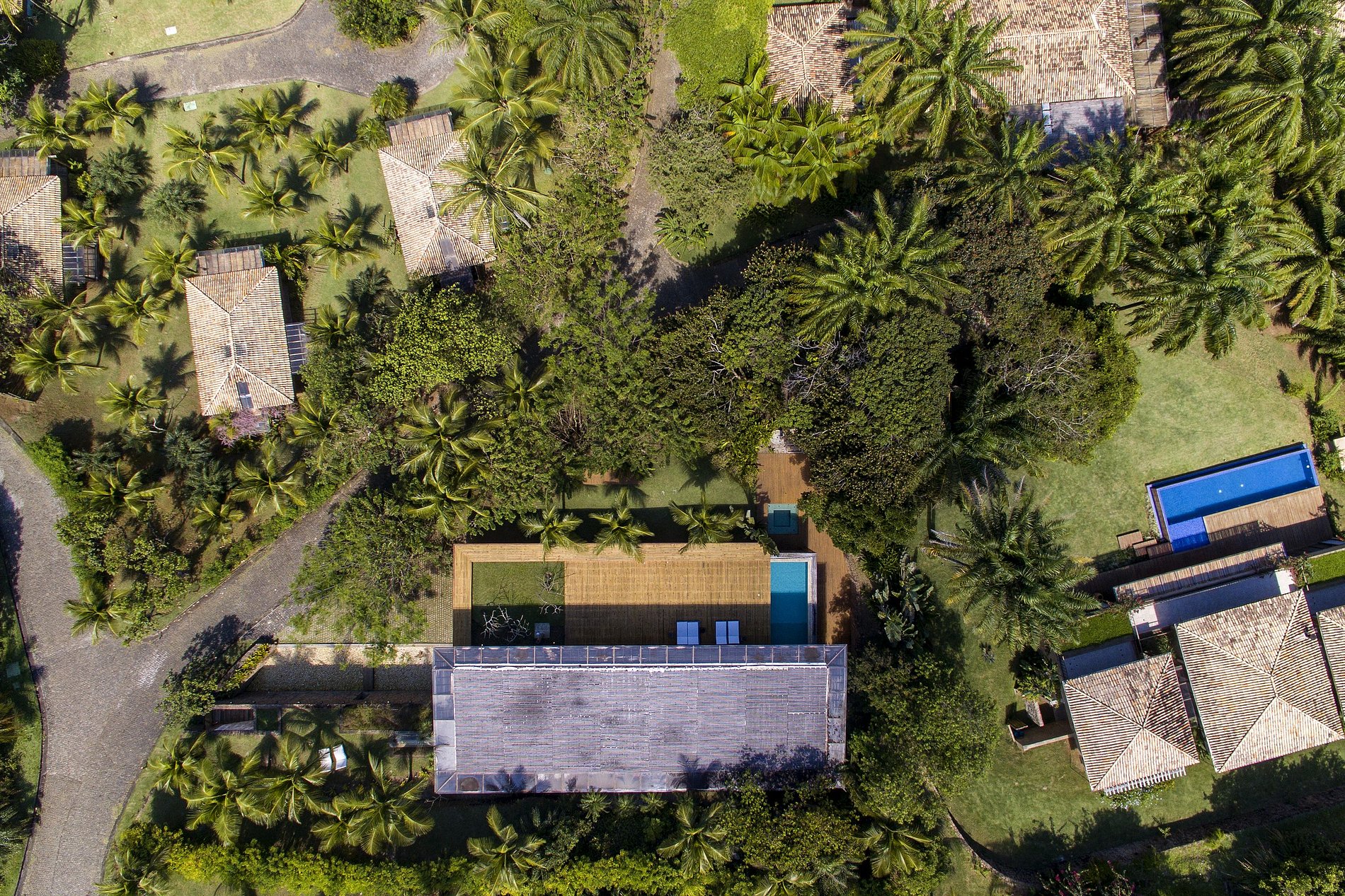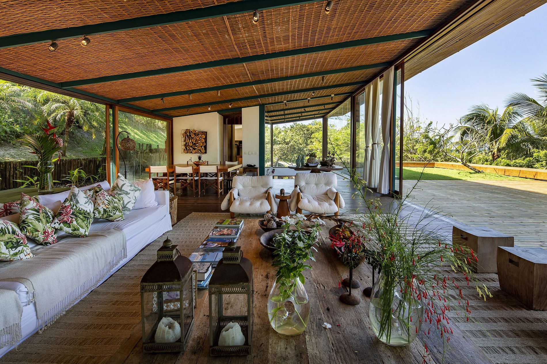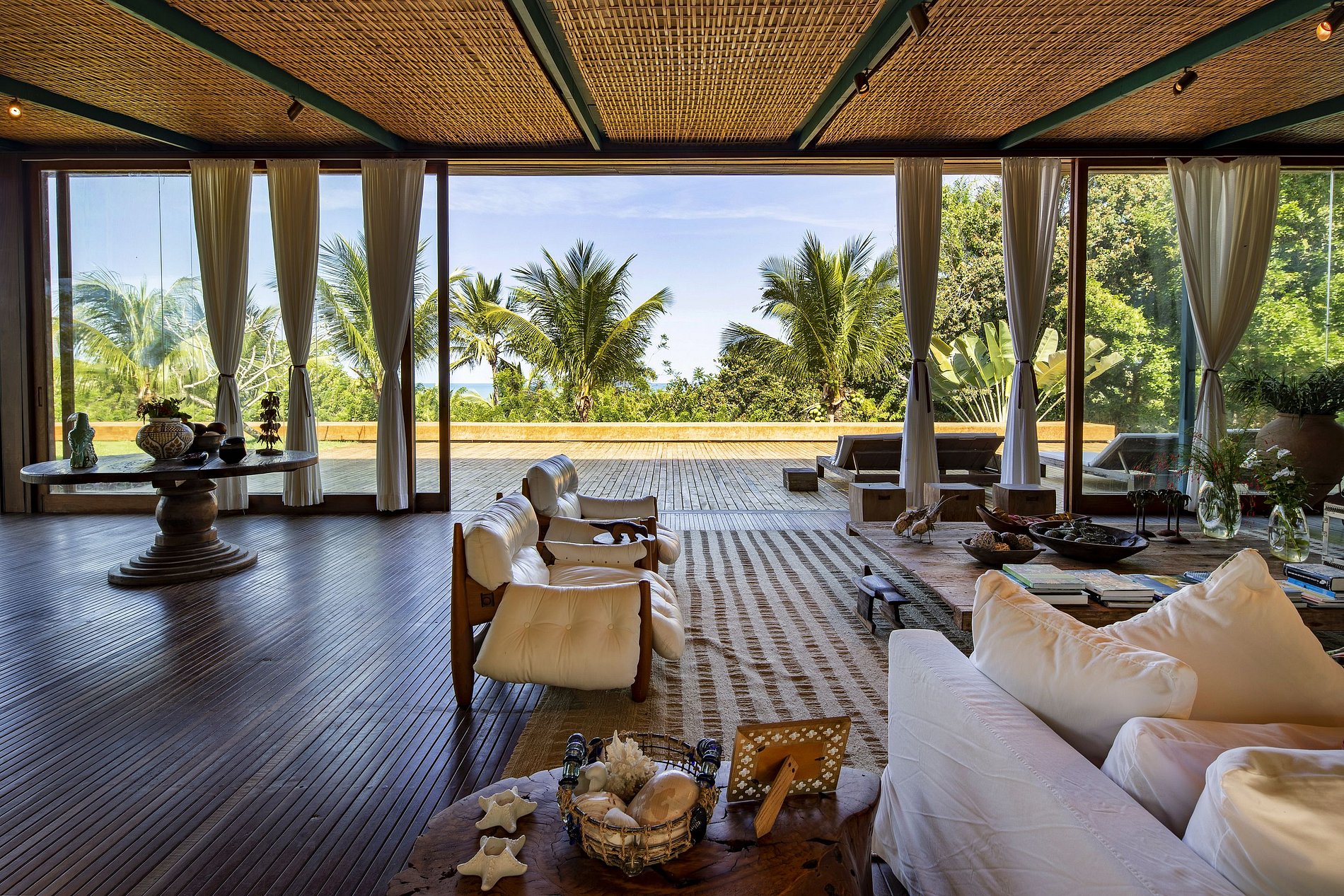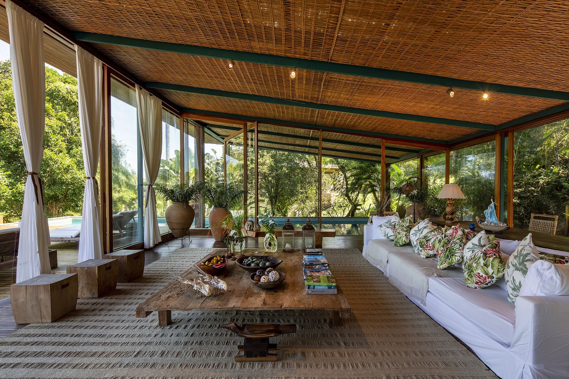 L'un des nombreux points forts de la propriété est la piscine moderne, qui repose en partie sous un solarium conçu par Bahian. Avec une entrée unique conçue de l'intérieur du bâtiment à la piscine, le confort de l'intérieur et la nature inédite semblent se confondre. Il y a aussi une immense terrasse en bois tropical, ce qui ne peut être meilleur endroit pour se détendre sous le soleil de Bahian.