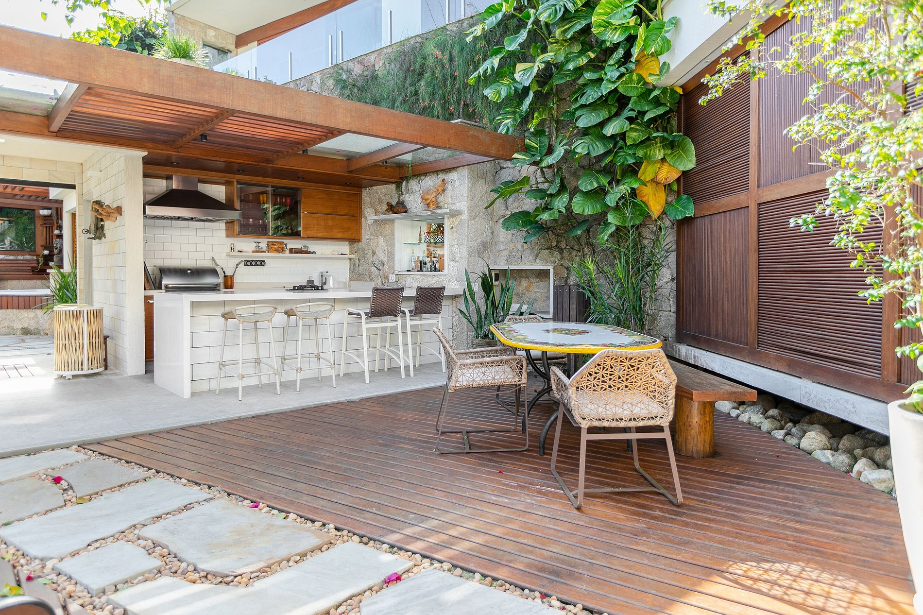 L'espace gastronomique en plein air, avec barbecue, est stratégiquement situé à côté de la piscine, offrant un espace parfait pour manger en plein air et socialiser avec la famille et les amis.
