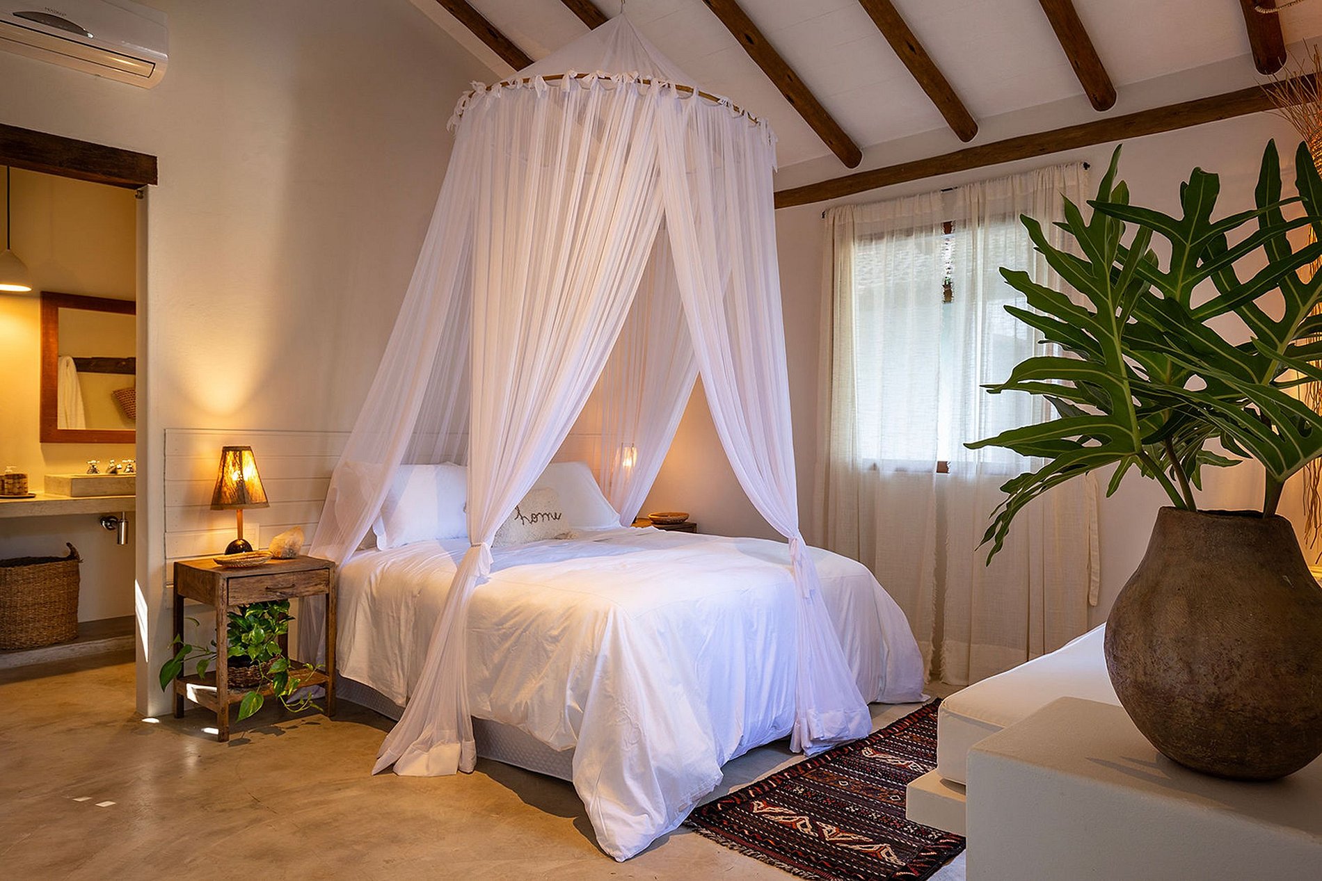 Il y a 3 suites grandes chambres avec salle de bain et climatisation:L'élégante suite parentale avec bureau, dressing et salle de bains élégante2 cottages privés sont situés après la piscine, offrant intimité et confort. Chacun a un lit Queen et un lit simple. Le lit queen peut être mis en place dans deux lits simples, offrant jusqu'à 3 lits simples par cottage.Cette location de vacances est l’option idéale pour passer vos vacances dans le quartier noble de Trancoso, avec sécurité et confort à un prix raisonnable!Le ménage quotidien et le nettoyage sont inclus dans le prix de la location.
