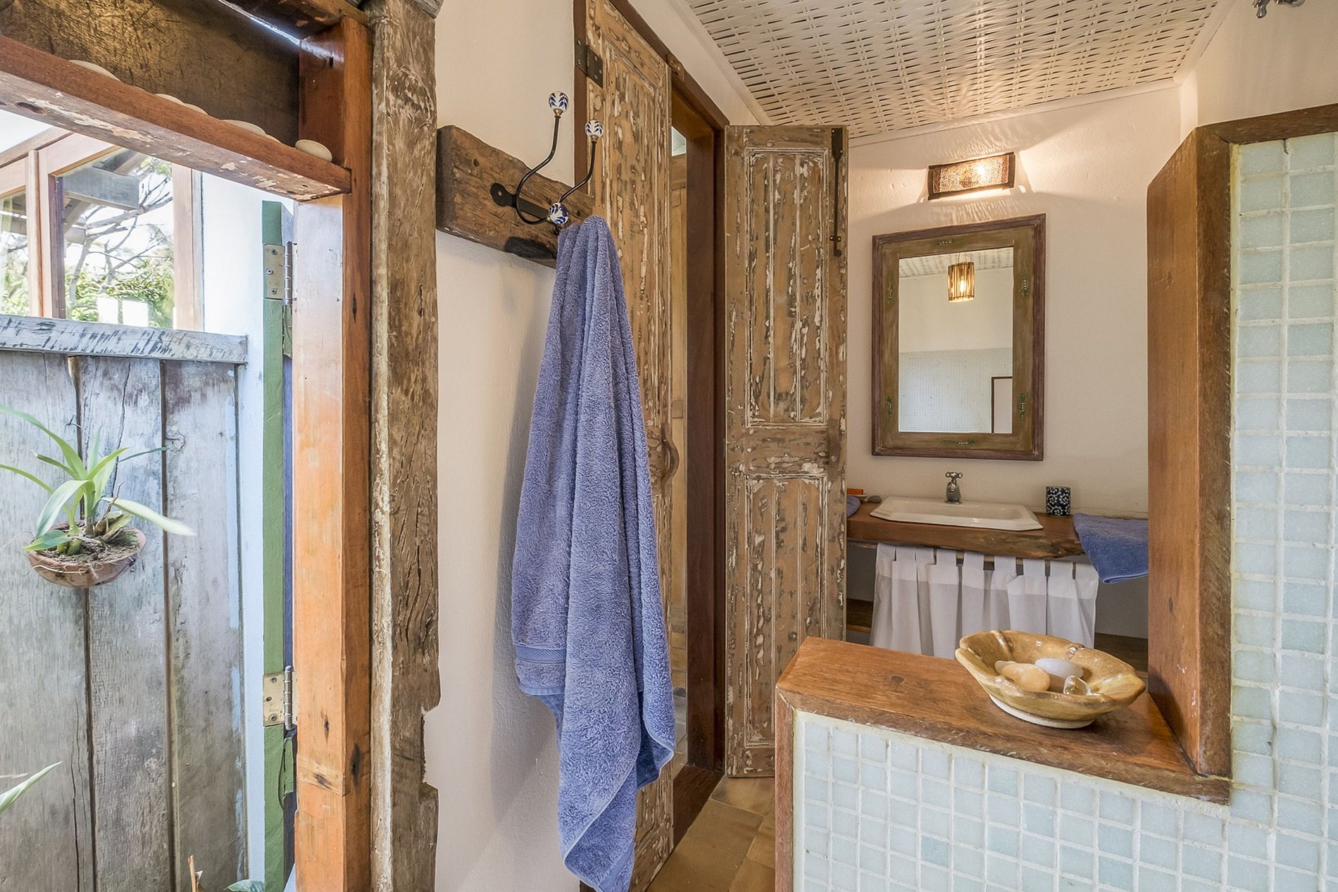 La pergola romantique, á lómbre des fleurs grimpantes et bénéficiant de la brise maritime et l´espace extérieur gourmet, sont des endroits fantastiques pour vos barbecues de poissons et de langoustes de Bahia.Chacune des 4 chambres avec leur propre salle de bain offre une vue magnifique, de grand lit et l´air conditionné.La villa principale, ses grandes terrasses, ses deux belles cuisines et son grand salon, comprend deux suitesLa suite parental á une baignoire á remous à remous et son balcon privé donnant sur la mer.L'élément principal de la construction écologique de cette ferme de style "rustique-chic" sont les splendides bois tropicaux.