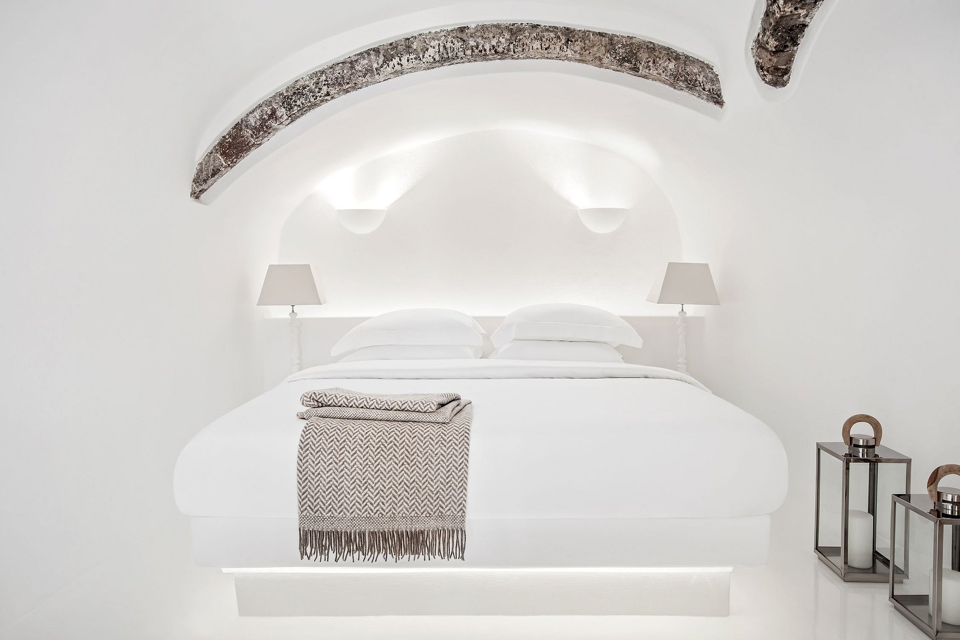 Le premier étage dispose d’une piscine privée ainsi que de deux chambres masters comprenant des salles de bain privées et des douches à effet pluie. Celles-ci peuvent accueillir jusqu'à 4 personnes (intérieur de 65 m2 et extérieur de 180 m2). Salon spacieux, kitchenette ouverte et salle à manger pour 6 personnes, parfait pour une magnifique expérience de coucher de soleil à Santorin.