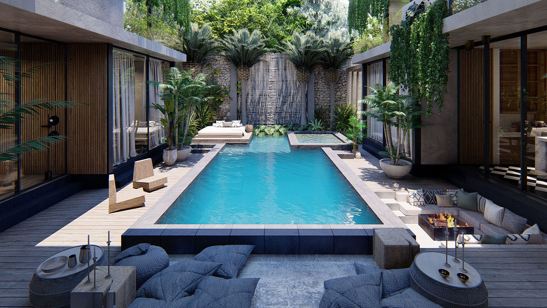 La villa est dotée d'une grande piscine, d'un rooftop élégant avec des coins salon et de détente colorés, d'un firepit et de jacuzzis. Au premier étage, vous trouverez une grande salle à manger, un bar, ainsi qu'un home cinéma pour des nuits reposantes. La villa dispose de nombreux espaces extérieurs pour profiter de moments privilégiés avec votre groupe, sur le toit, autour de la piscine, à l'espace BBQ..!