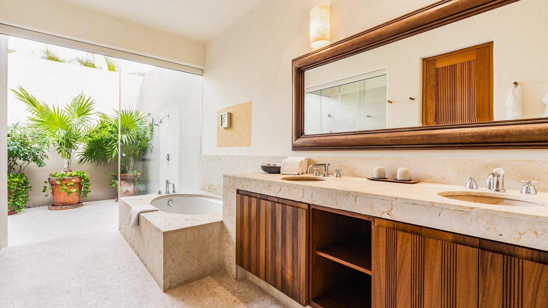 Dès l’entrée, la sensation d’espace, de lumière et d’ouverture définit l’expérience. L’architecture allie élégance contemporaine et chaleur du style mexicain, créant une atmosphère à la fois raffinée et accueillante. Chaque détail a été soigneusement pensé pour offrir confort et sophistication.
