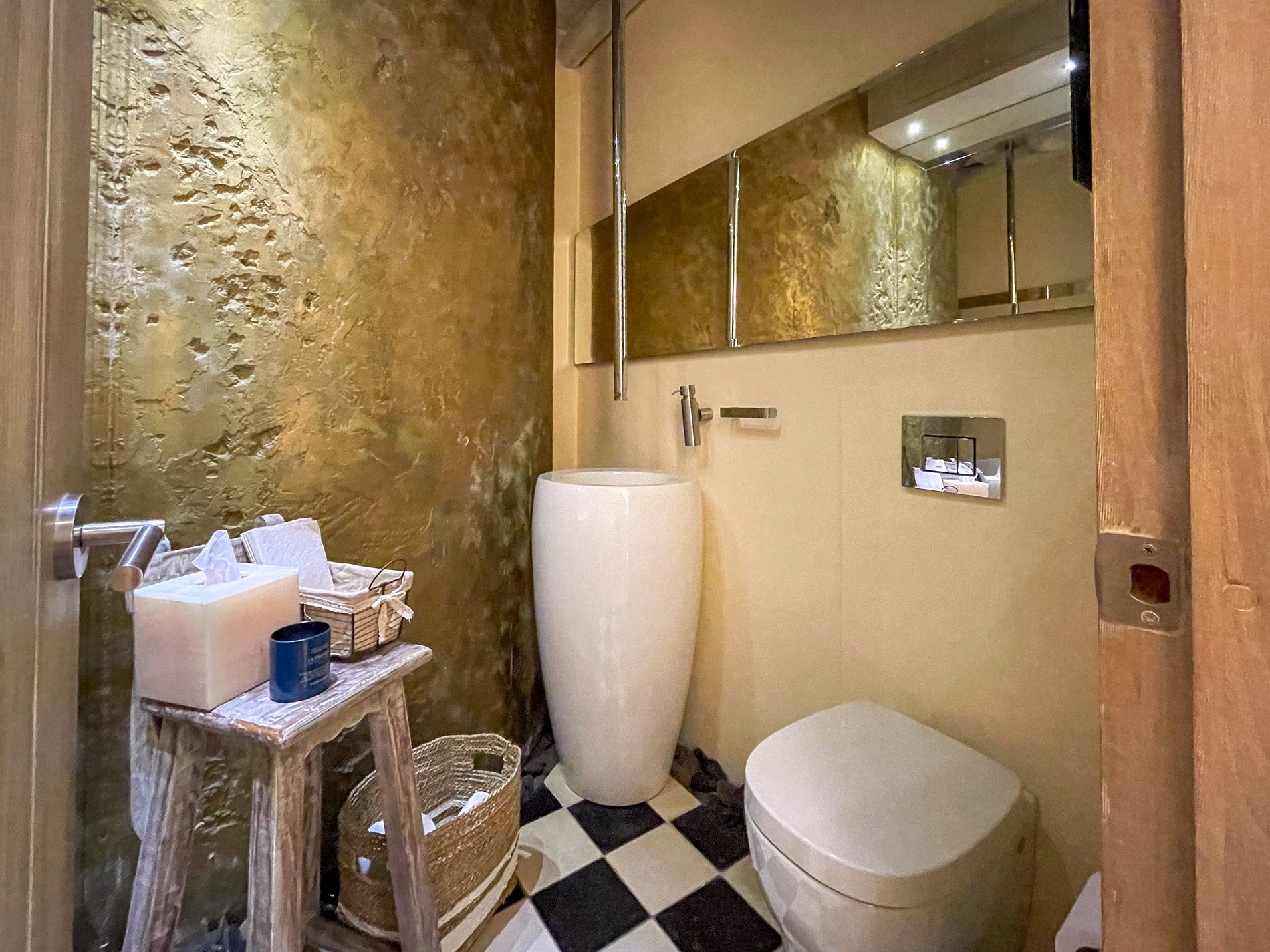 Montez au deuxième étage, où vous attendent deux chambres doubles, chacune avec salle de bains privative équipée de toilettes Toto, lavabos Laufen et robinets Grohe, ainsi qu'un balcon offrant une vue sur la mer. Plongez dans le confort des matelas Sealy, entourés de draps élégants et d'équipements modernes tels que des peignoirs, des minibars, la télévision par câble et des coffres-forts. Une chambre supplémentaire pour l'employé de service interne assure une hospitalité personnalisée tout au long de votre séjour, tandis que la salle de bains d'invités au premier étage ajoute une commodité pour les visiteurs.