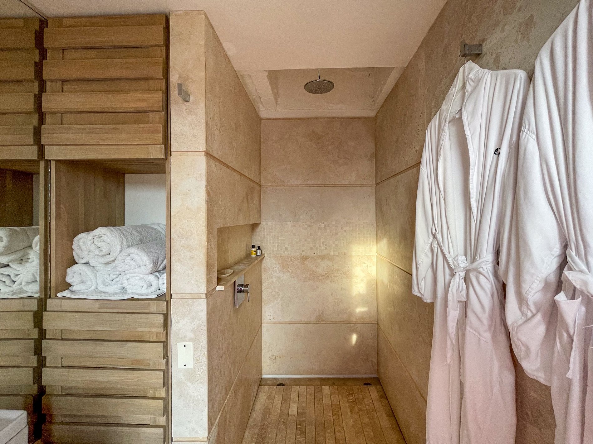 Découvrez la perle de ce penthouse : la magnifique terrasse sur le toit offrant une vue panoramique sur les remparts historiques de Carthagène, la cathédrale et au-delà. Que vous profitiez du jacuzzi, preniez le soleil sur des chaises longues luxueuses ou organisiez des réunions dans l'espace barbecue avec bar, chaque moment est imprégné de luxe et de détente. Complet avec une salle de bains complète pour un confort supplémentaire, cet oasis en plein air est le cadre idéal pour savourer le coucher de soleil et les lumières scintillantes de Carthagène la nuit. De plus, un charmant brasero ajoute une ambiance chaleureuse, parfaite pour se retrouver entre amis et en famille tout en profitant des vues imprenables et de la brise chaude des Caraïbes.