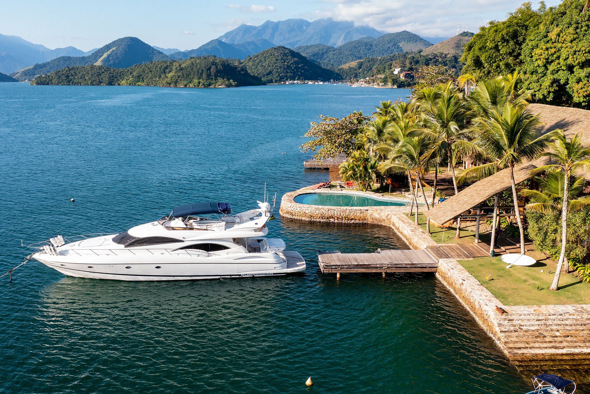 L'île dispose de 24 heures de sécurité et d'un hors-bord de 76 pieds disponible à la location pour R$ 13,750/jour pour un minimum de 3 nuits.