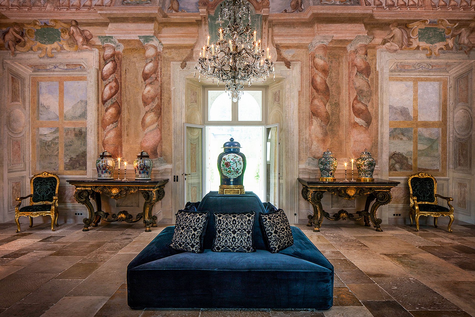 Au cœur d’un immense jardin paysager, la propriété offre un cadre idyllique en bord de lac avec piscine extérieure, ponton privé et hangar à bateaux, créant une atmosphère de refuge exclusif. À l’intérieur, les salons et galeries dévoilent des espaces dignes d’un musée : une collection inestimable d’objets d’art, de mobilier d’époque, d’antiquités et de tableaux soigneusement conservés. Les lustres en cristal, les détails dorés, les miroirs anciens aux bordures patinées à l’or magnifient chaque pièce, tandis que de spectaculaires fresques du XVIIᵉ siècle ornent encore les murs, intactes, comme suspendues dans le temps. Portée par un passé prestigieux et par l’harmonie parfaite entre nature et patrimoine, la villa compte parmi les plus grandes et les plus glamour du lac de Côme, régulièrement citée par Harper’s Bazaar et Vogue parmi les adresses les plus exclusives de la région.