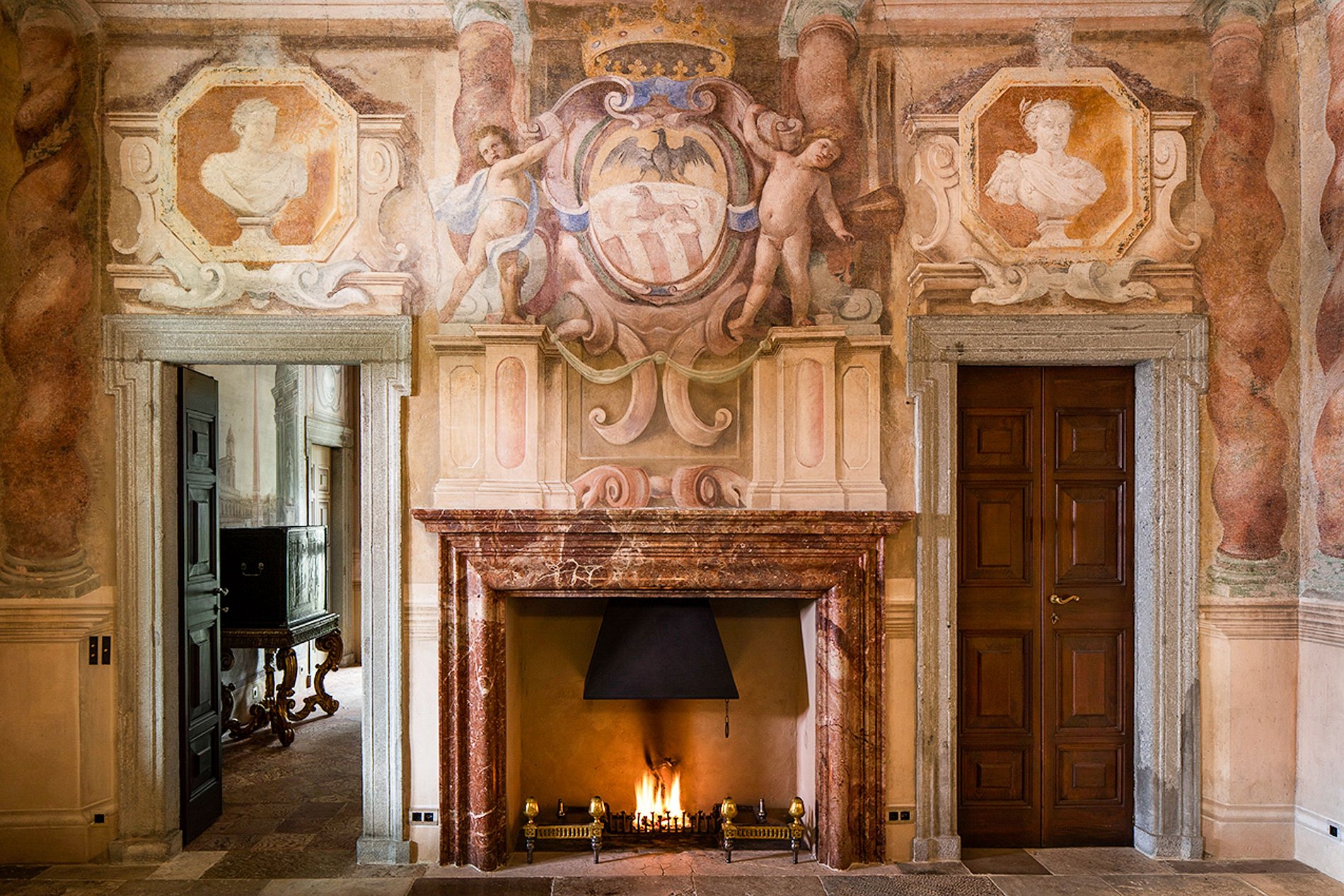 Au cœur d’un immense jardin paysager, la propriété offre un cadre idyllique en bord de lac avec piscine extérieure, ponton privé et hangar à bateaux, créant une atmosphère de refuge exclusif. À l’intérieur, les salons et galeries dévoilent des espaces dignes d’un musée : une collection inestimable d’objets d’art, de mobilier d’époque, d’antiquités et de tableaux soigneusement conservés. Les lustres en cristal, les détails dorés, les miroirs anciens aux bordures patinées à l’or magnifient chaque pièce, tandis que de spectaculaires fresques du XVIIᵉ siècle ornent encore les murs, intactes, comme suspendues dans le temps. Portée par un passé prestigieux et par l’harmonie parfaite entre nature et patrimoine, la villa compte parmi les plus grandes et les plus glamour du lac de Côme, régulièrement citée par Harper’s Bazaar et Vogue parmi les adresses les plus exclusives de la région.