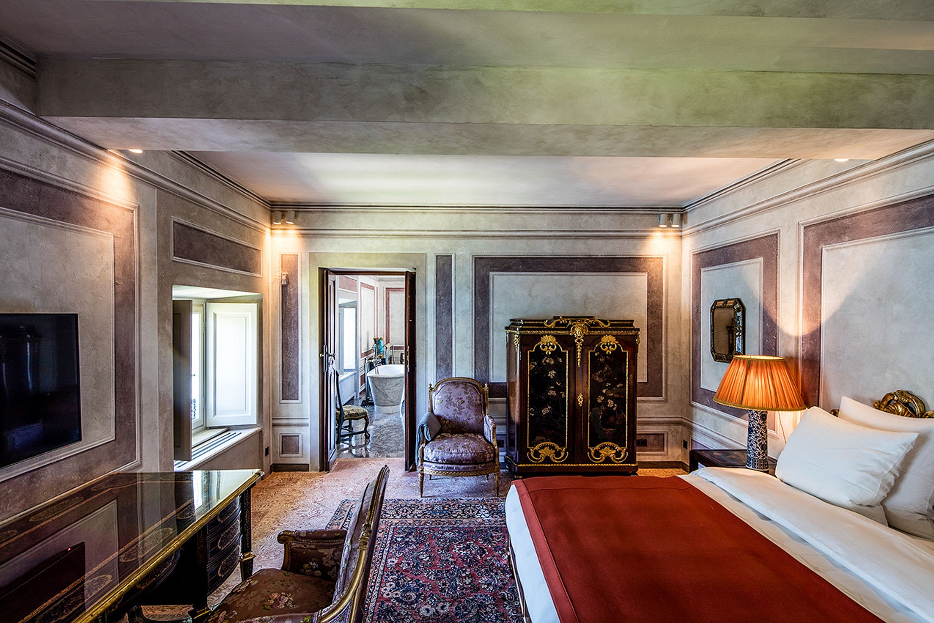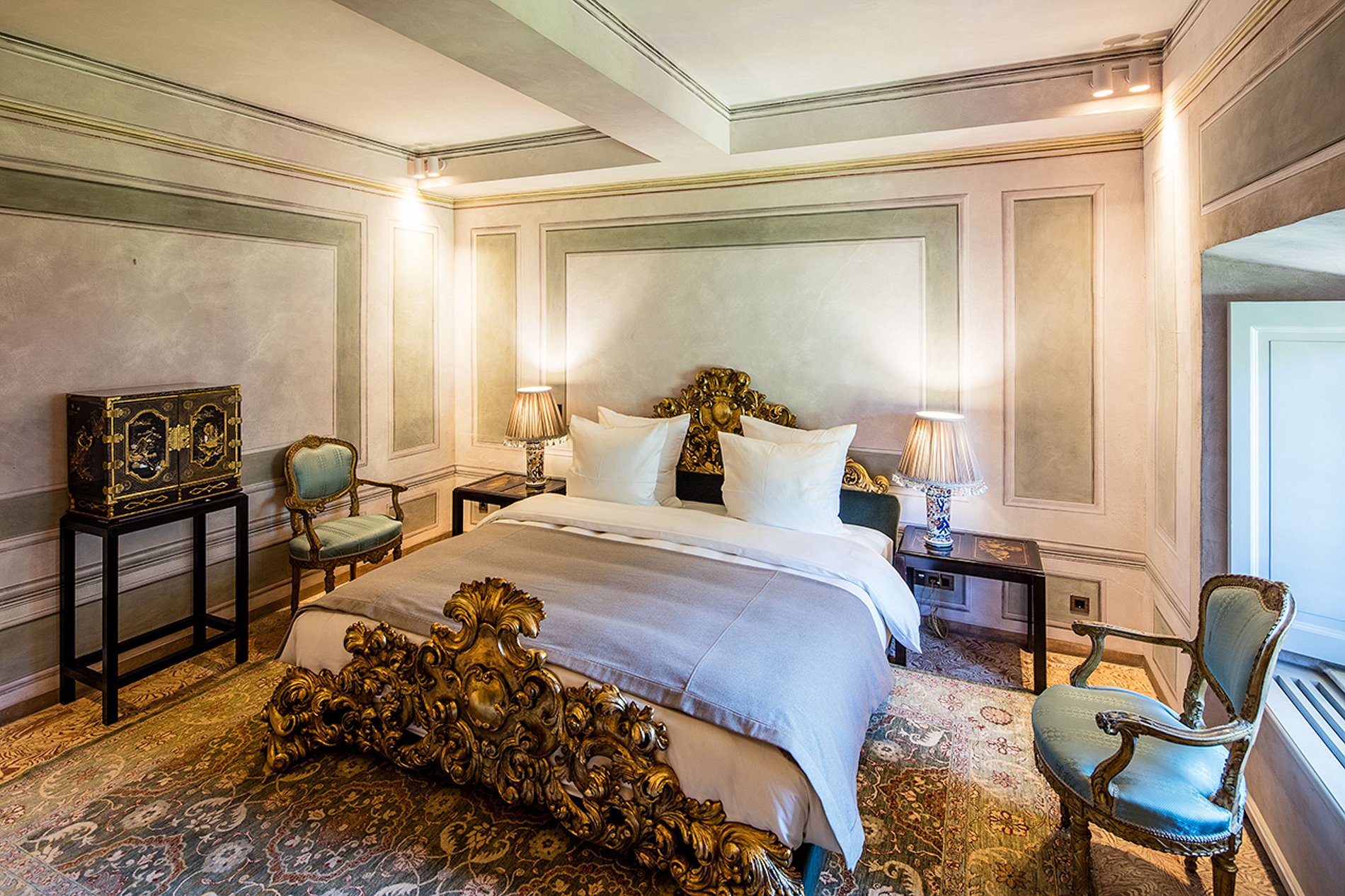 Le palais principal abrite six suites luxueuses, toutes conçues individuellement, avec une identité propre. Entre les vues imprenables sur le lac, les volumes majestueux et les salles de bains en marbre, chaque suite promet une expérience d’exception, à la fois intime, élégante et intemporelle.