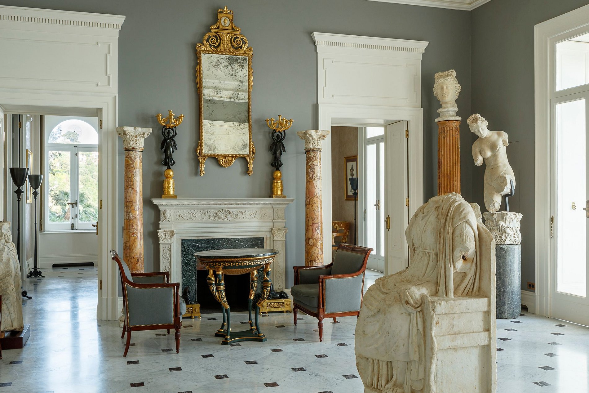 La villa comprend 6 suites luxueuses, chacune conçue individuellement, les chambres décorées des plus beaux meubles d'époque et d’objets d'art précieux sont dignes d'un musée, ainsi que de nombreux objets anciens dans les jardins luxuriants. Chaque suite possède une somptueuse salle de bain en marbre.