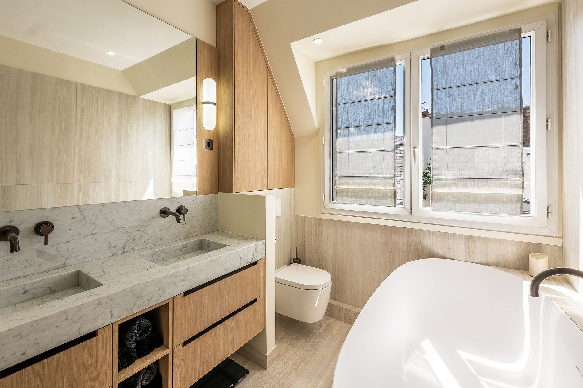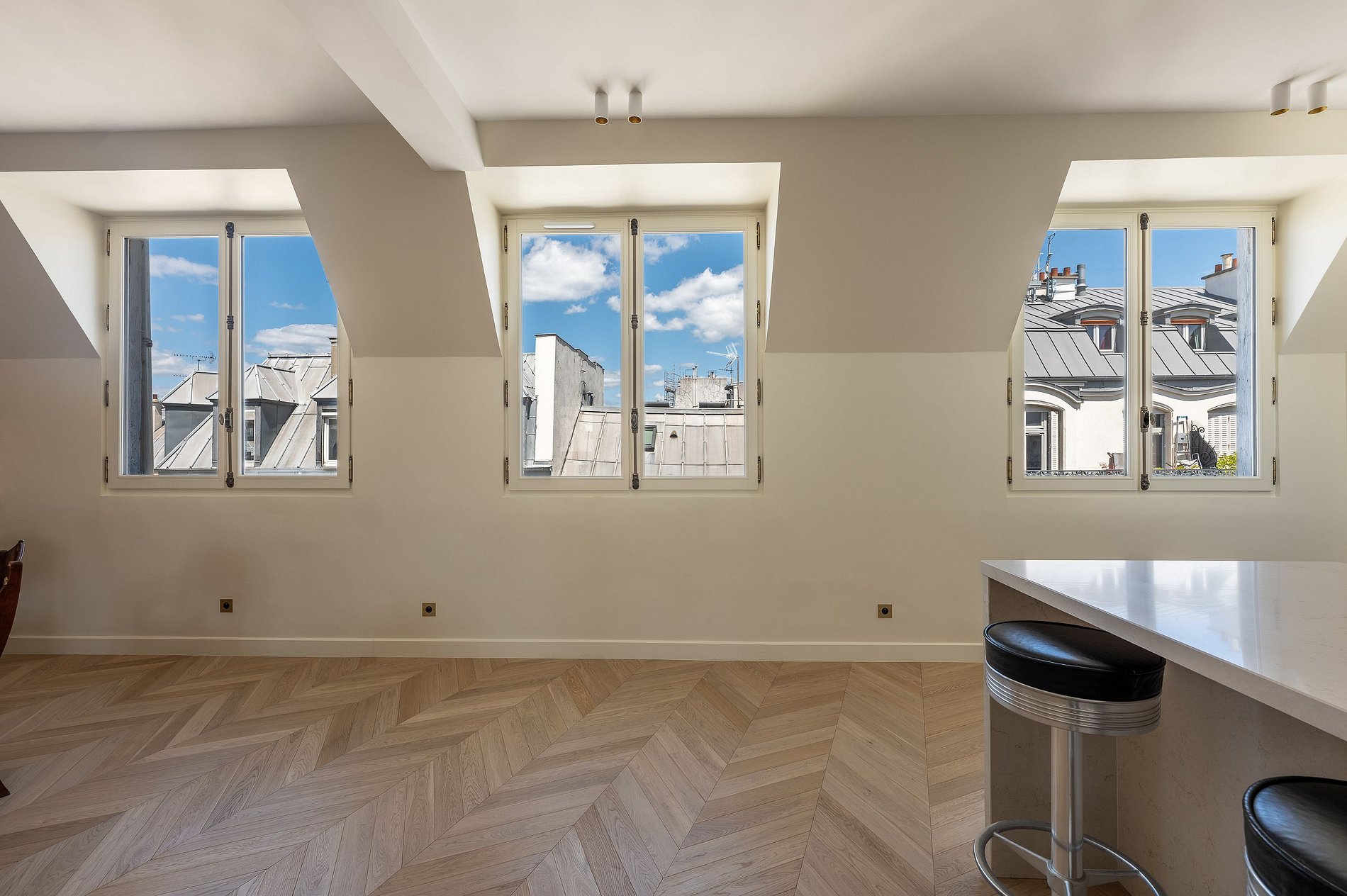 Nichée au 5ᵉ étage d’un immeuble parisien plein de charme (accès par escalier à partir du 3ᵉ étage – ascenseur jusqu’au 3ᵉ), cette résidence baignée de lumière naturelle séduit par son design contemporain à aire ouverte, alliant élégance intemporelle et confort moderne.