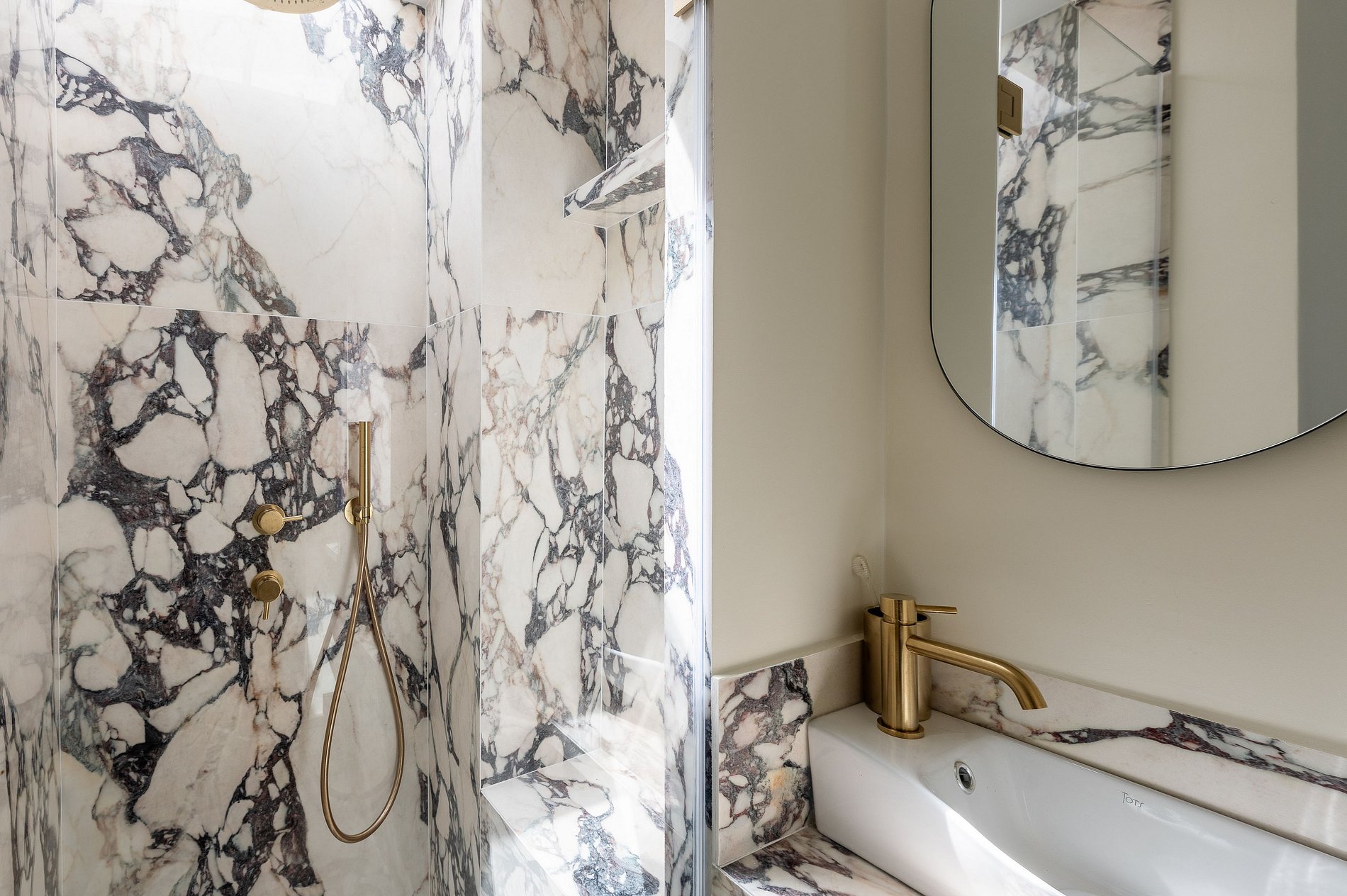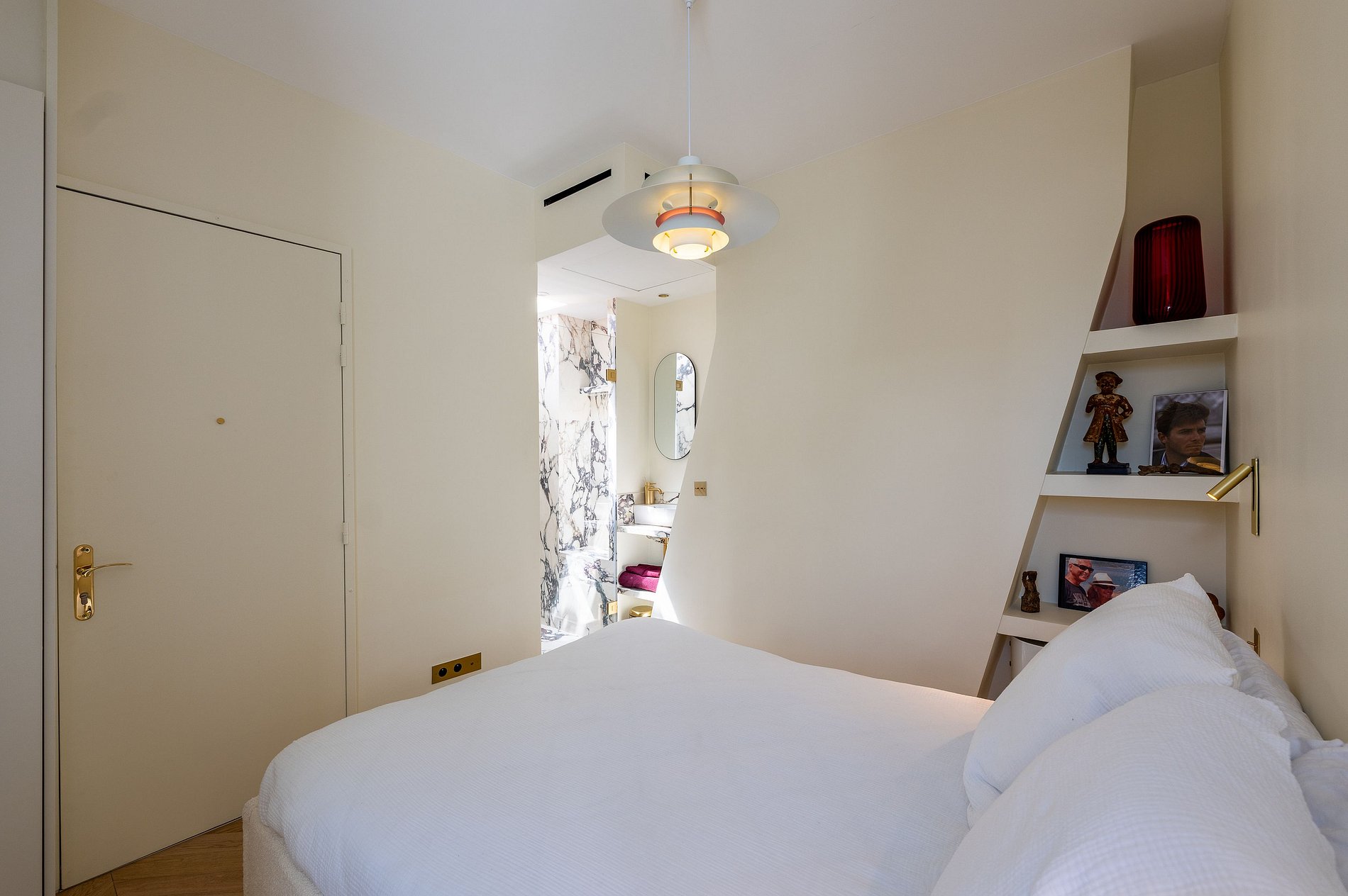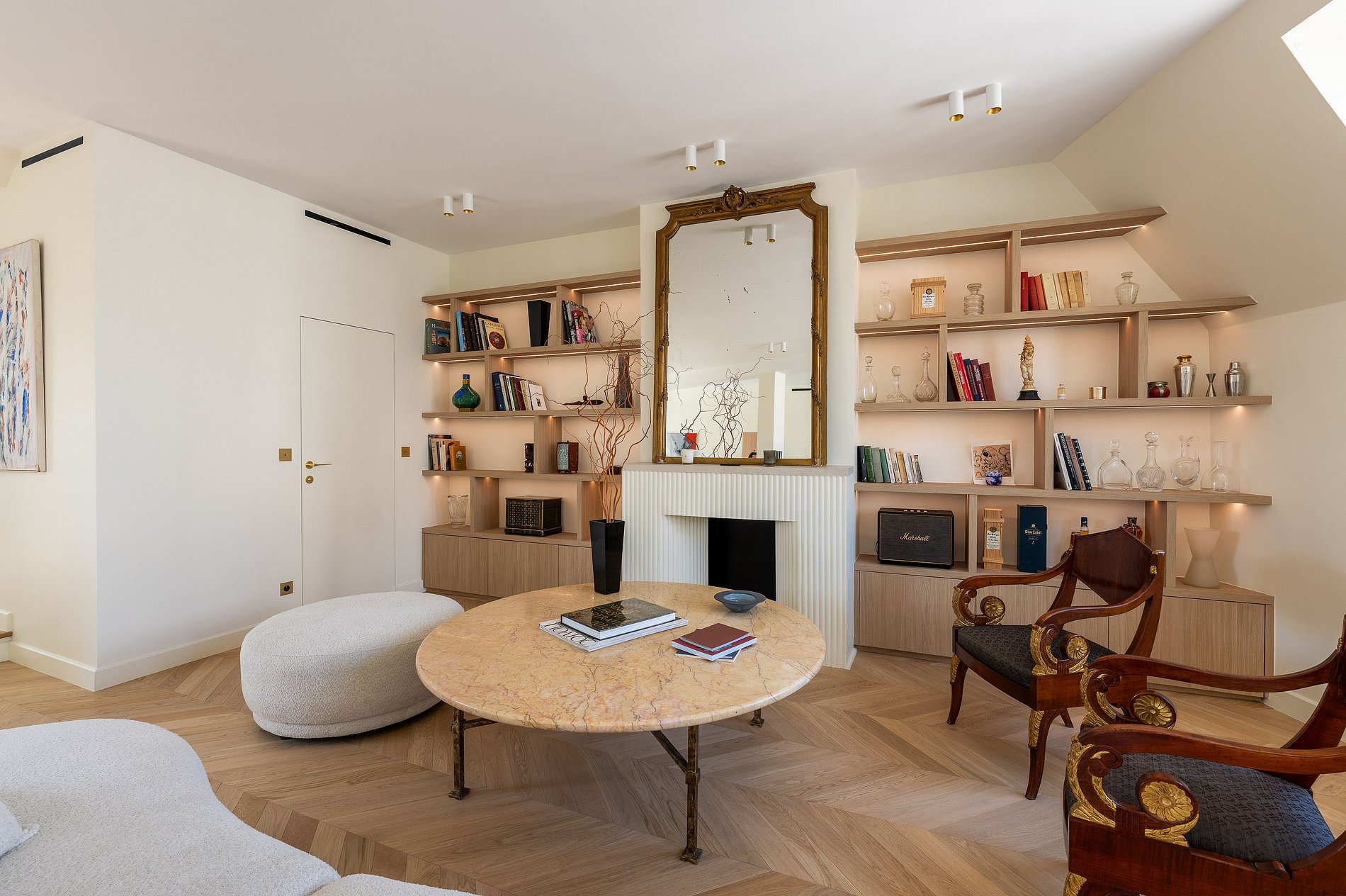 Nichée au 5ᵉ étage d’un immeuble parisien plein de charme (accès par escalier à partir du 3ᵉ étage – ascenseur jusqu’au 3ᵉ), cette résidence baignée de lumière naturelle séduit par son design contemporain à aire ouverte, alliant élégance intemporelle et confort moderne.