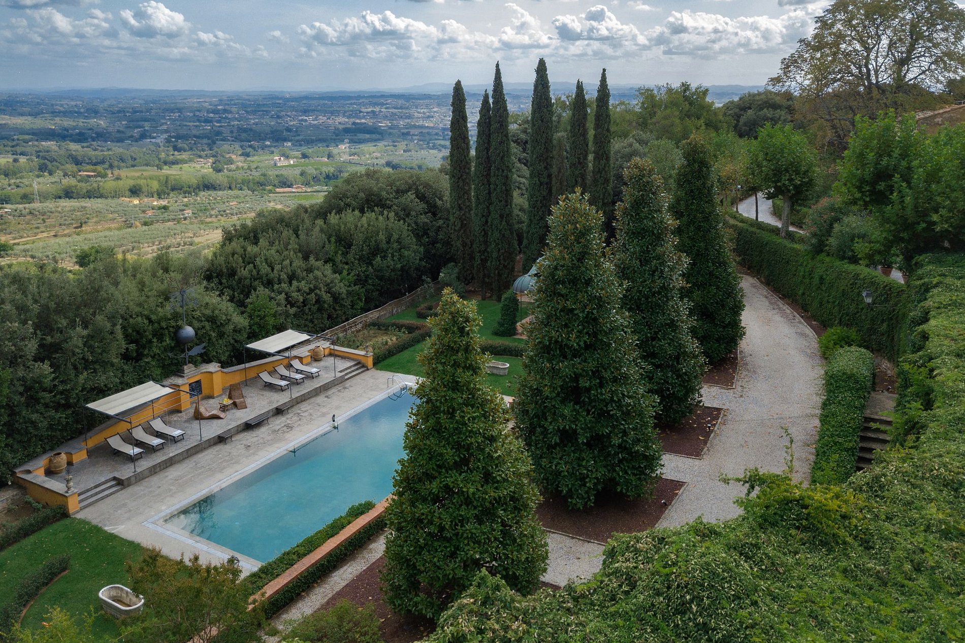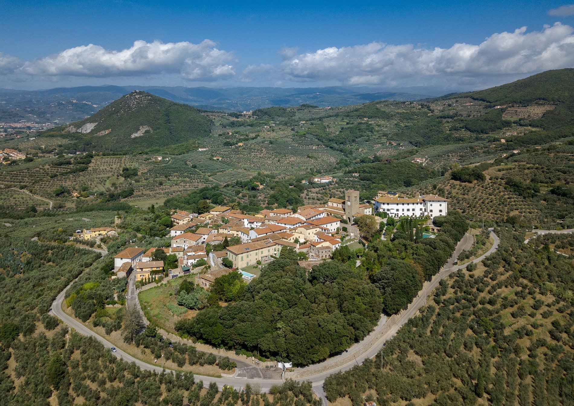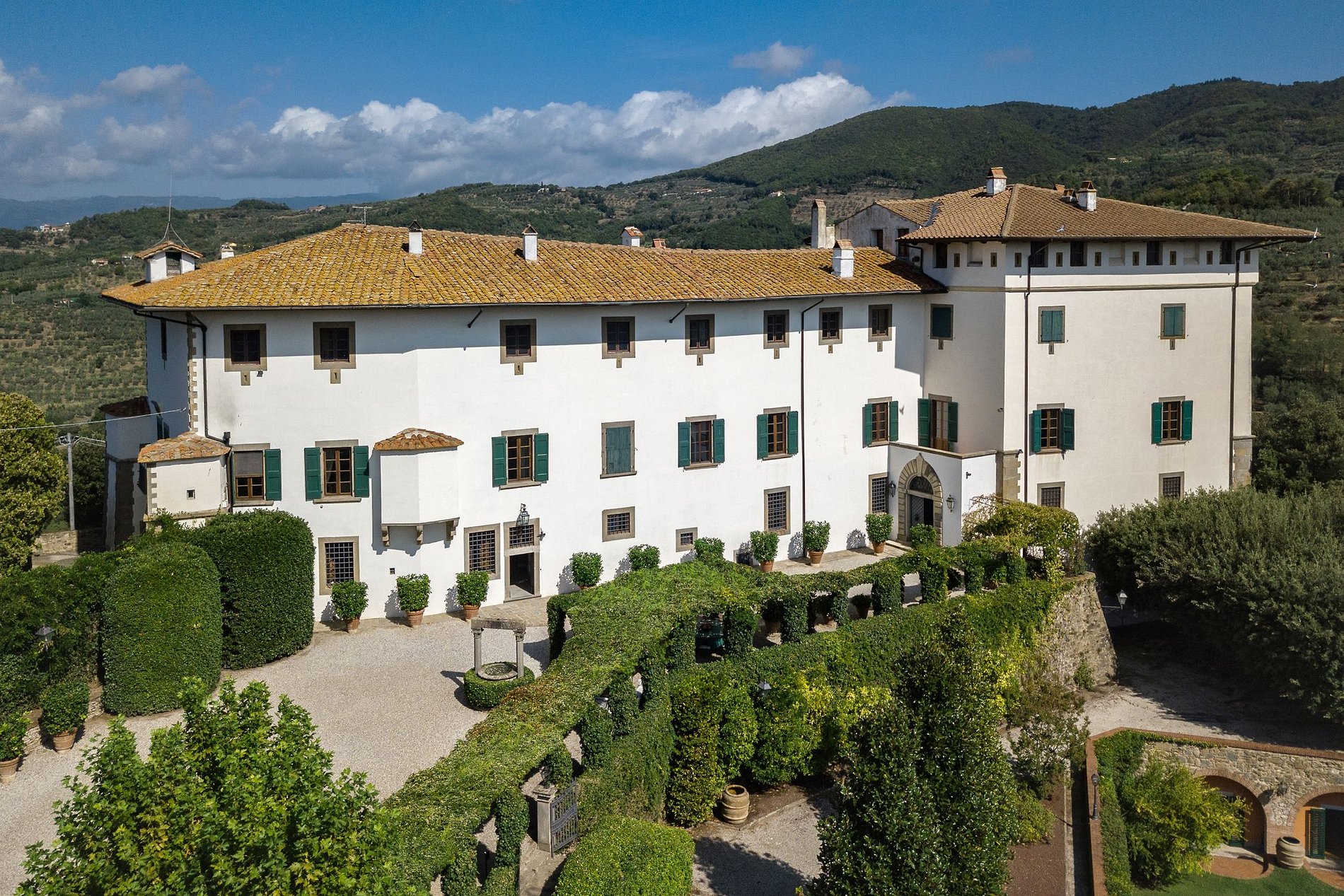Cette magnifique villa est située au sommet d'une petite colline proéminente, surplombant les vallées de Florence et de Lucca. Ce charmant village situé au sommet de la colline s'appelle Montevettolini: il est situé dans la région viticole du Chianti florentin, à quelques pas du lieu de naissance de Léonard de Vinci. Montevettolini se trouve en fait à Monsummano Terme, une célèbre station balnéaire et relie la région de Monsummano à la région viticole IGP de Montalbano, qui abrite des marques de vin prestigieuses telles que Capezzana et Antinori, ainsi que les huiles toscanes les plus prestigieuses, issues de fermes productrices de la région. .