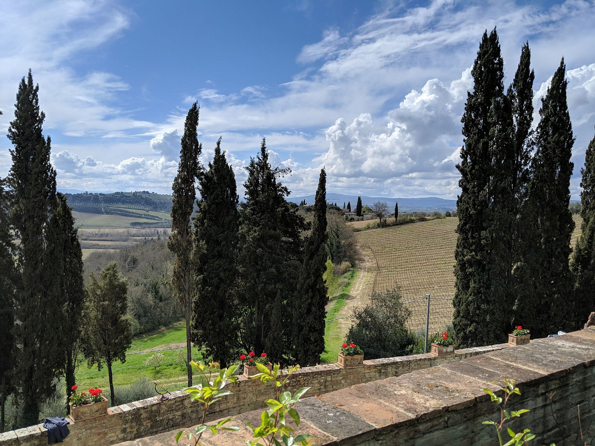 En face de la Villa, il y a un grand jardin avec une vue imprenable sur la campagne toscane et des vues spectaculaires sur la campagne vallonnée.