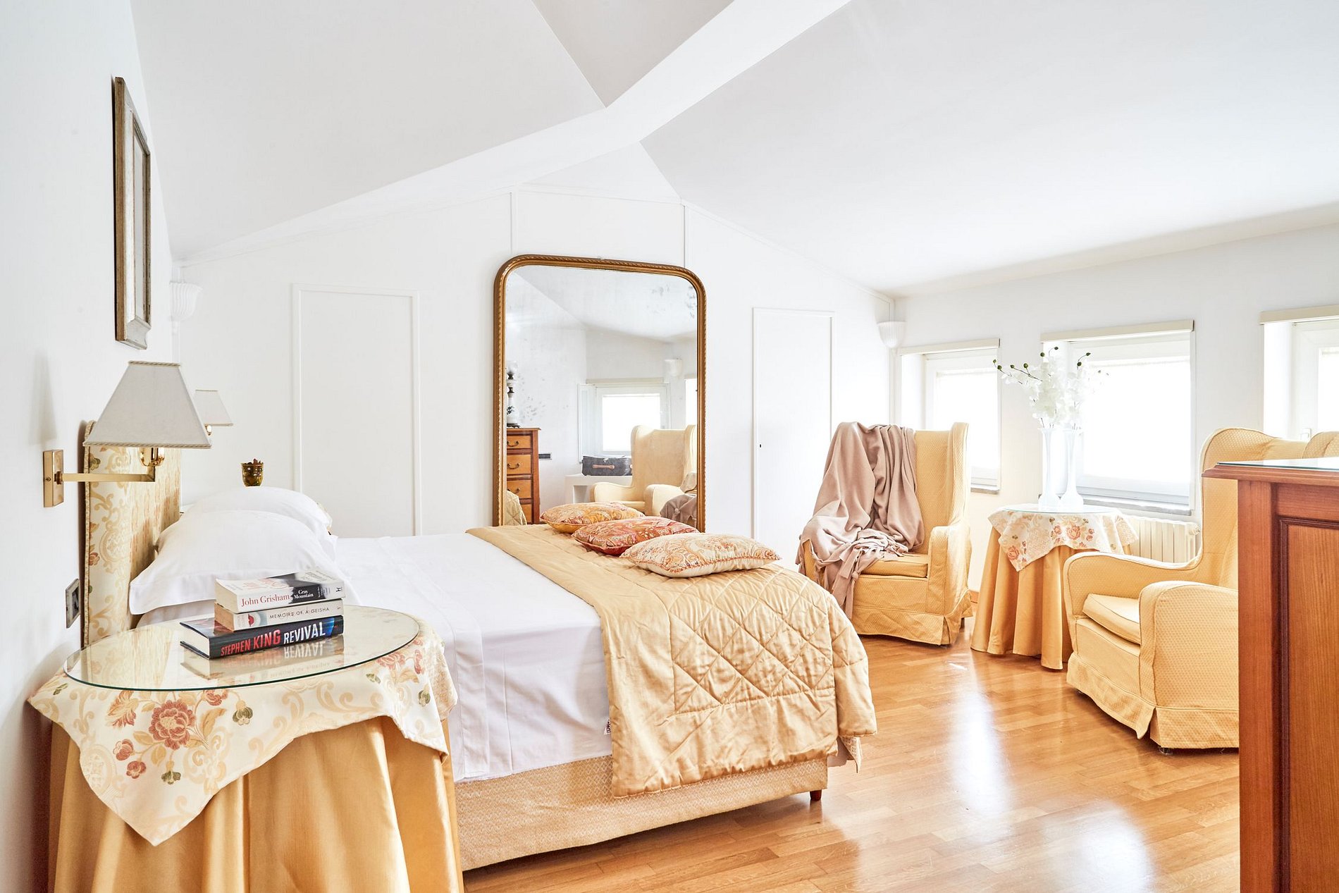 Cette villa sophistiquée dispose d'un mobilier exclusif et de grands espaces, avec plus de 450 mètres carrés sur plusieurs niveaux différents. Le jardin mène à l'entrée principale: sur la gauche, vous trouverez le spacieux salon, bureau, salle à manger et la salle de musique. A droite de l'entrée, vous trouverez la zone rustique avec la cuisine, la salle à manger, le coin salon, une chambre double avec douche et WC. Les chambres sont situées au troisième étage: 1) la chambre principale dispose d'un lit double et d'une salle de bains, WC, jacuzzi et douche; 2) une chambre double avec salle de bain partagée: baignoire, WC; 3) une chambre double avec salle de bain partagée: baignoire, WC; 4) une chambre double avec salle de bains, douche, WC; 5) une chambre double avec salle de bains, douche, WC
