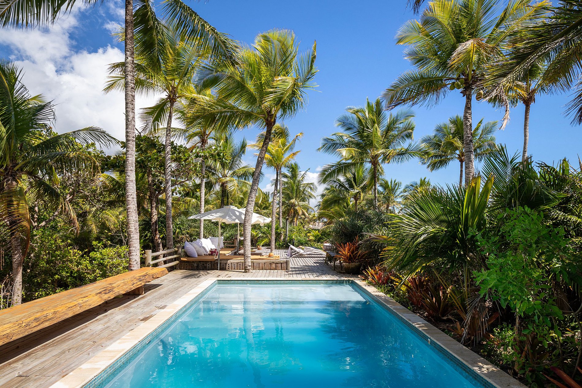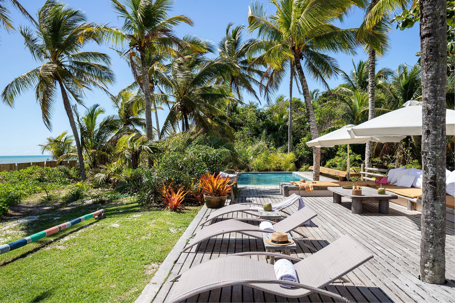 Un autre point fort de la maison est la structure de la plage. De la maison il y a un pont en bois traversant la mangrove. Face à la mer, il y a un belvédère avec les pieds dans le sable, une table d'appoint pour les collations et les boissons et des fauteuils confortables. A côté de la piscine, un beau et confortable canapé transforme les jours et les nuits en souvenirs.