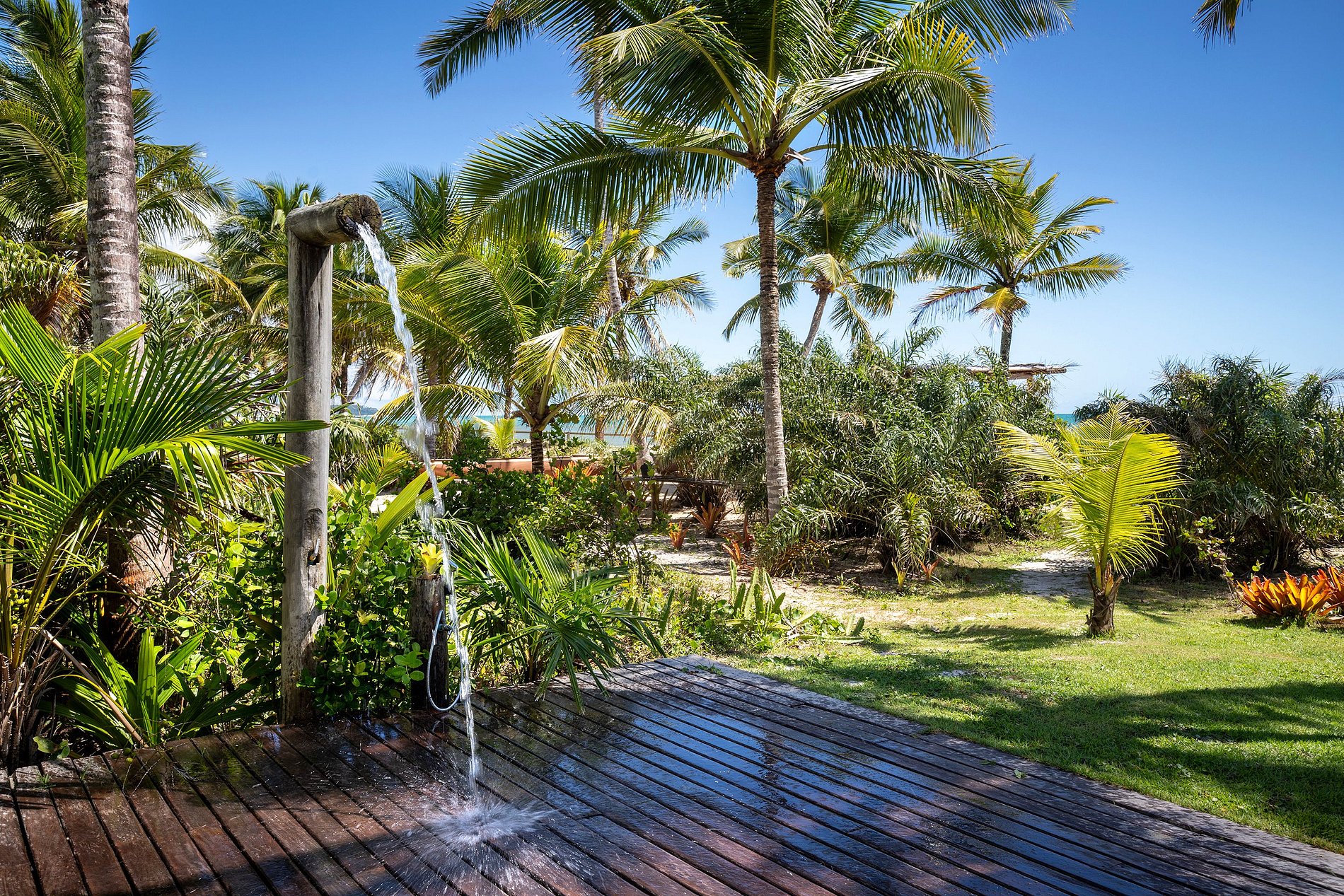 Cette immense terrasse a le privilège d'avoir une vue sur la mangrove et la mer.