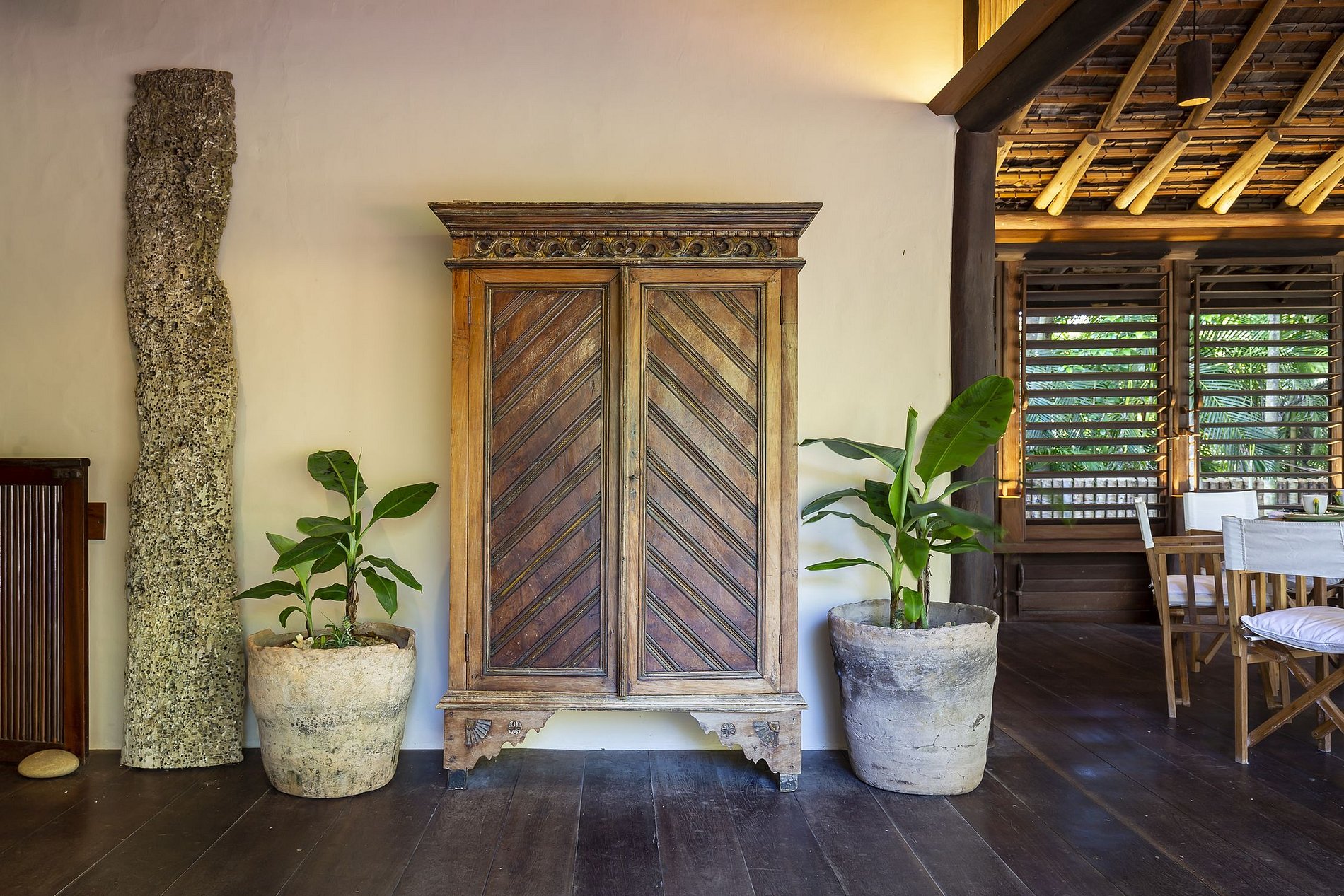 Cette immense terrasse a le privilège d'avoir une vue sur la mangrove et la mer.