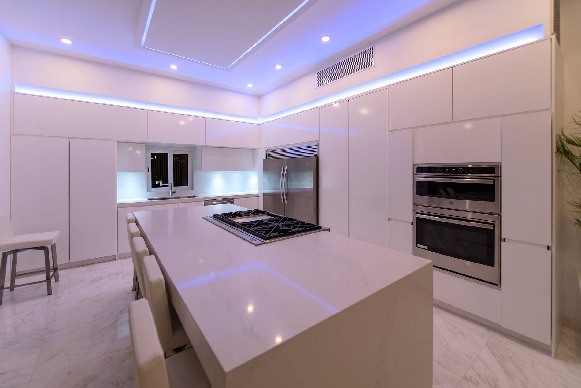 Sa salle de télévision est proche de l'espace extérieur et dispose d'un canapé en forme de U pour des soirées télé agréables après une journée au soleil. Sa salle à manger, située entre la salle TV et la cuisine, dispose d'une table pouvant accueillir confortablement 10 personnes. La cuisine est entièrement équipée avec des appareils modernes et un comptoir avec une table de cuisson, parfait pour un chef privé pour cuisiner de délicieux repas.